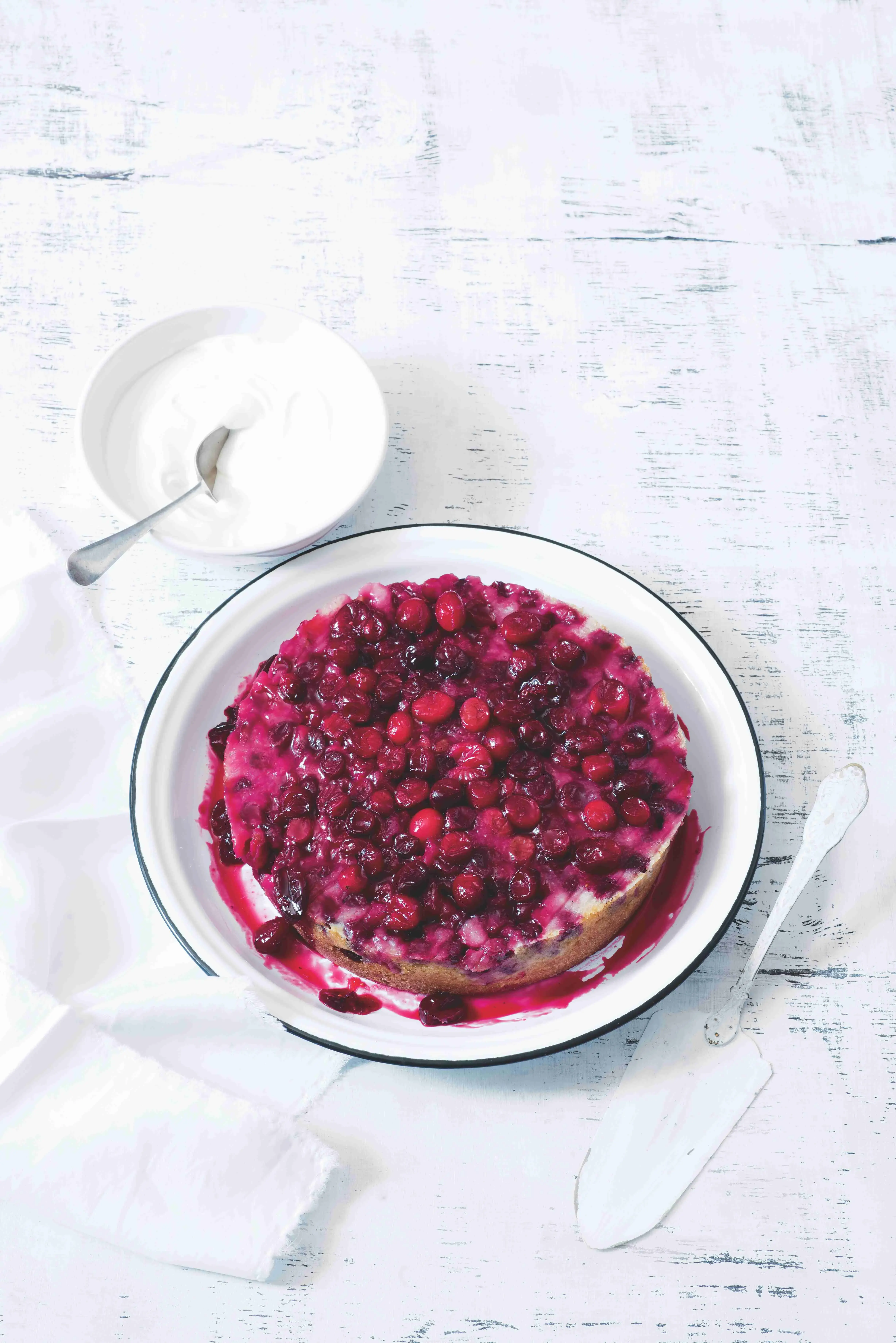 Jestli se na něco těšíme stejně jako na stromeček, je to sváteční výzdoba a jídla v barvách Vánoc. Třeba na tenhle jednoduchý obrácený koláč s pikantními americkými brusinkami.