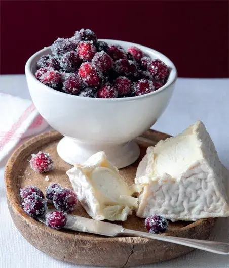 Proslazené brusinky mají lehce natrpklou, a přitom intenzivní chuť. Výborné jsou ke kozímu (i kravskému) sýru s bílou plísní na povrchu. Navíc krásně vypadají!