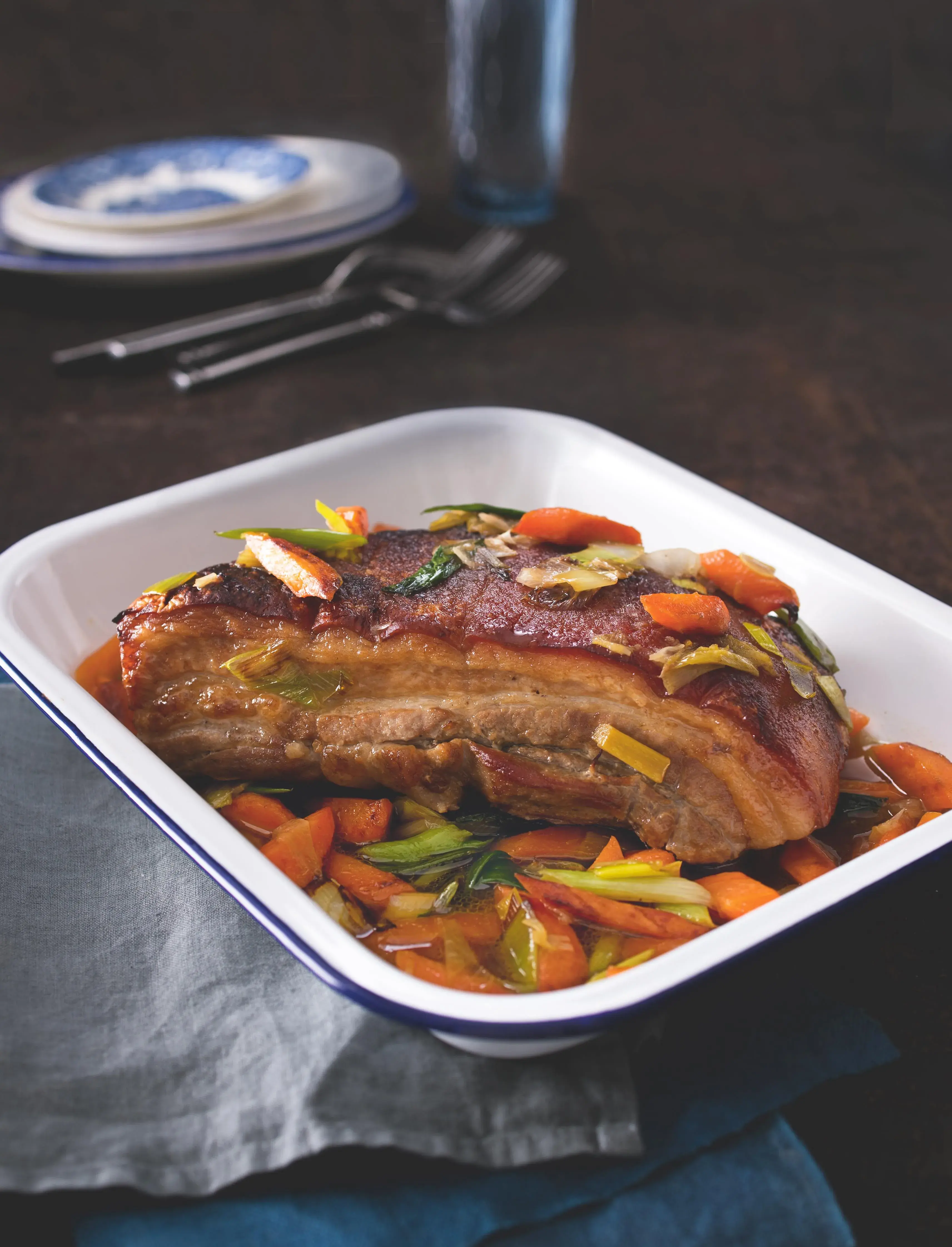 Bůčku si považují kuchaři u nás i v Asii. Mrkev a cibule podpoří sladkou chuť, která v kontrastu s vínem a koriandrem připomíná asijské speciality.