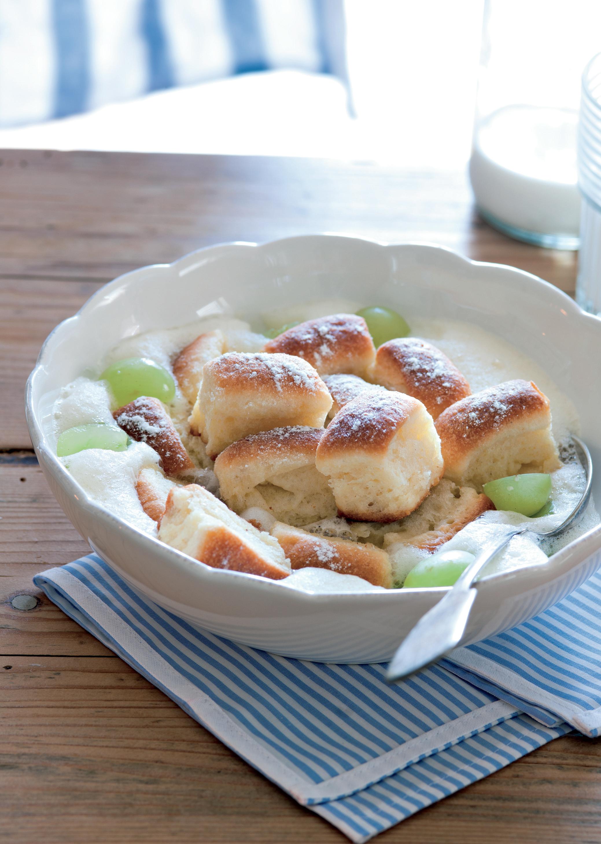 Vypečené buchtičky v nadýchané vinné pěně vám na tváři vykouzlí spokojený úsměv. Zkuste přidat šťavnaté kuličky hroznového vína, krásně jídlo vyváží dodají mu zcela nový rozměr.