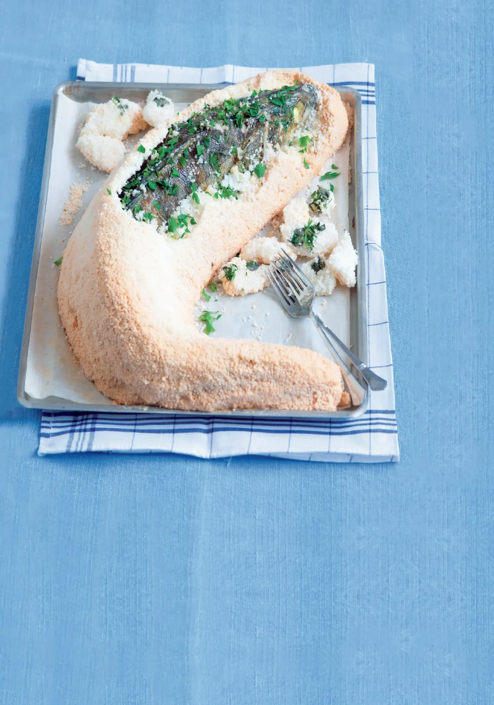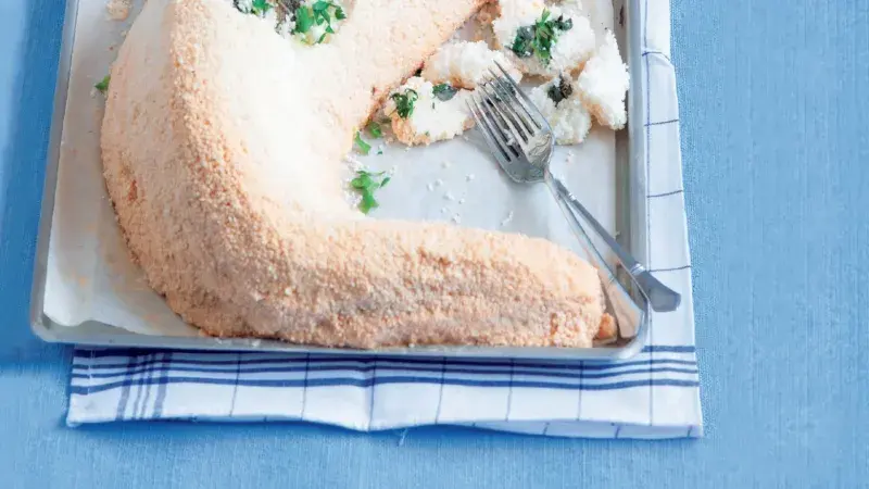 Solná krusta brání vysušení, a nejlépe tak vynikne lahodná chuť candáta, který nepotřebuje výrazně dochucovat.
