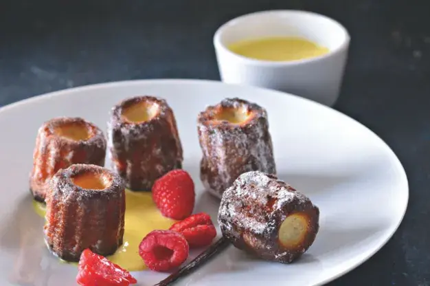 Kouzlo tohoto francouzského dezertu spočívá v zkaramelizované krustičce, která dokonale kontrastuje s jemným těstem s vůní vanilky a rumu. Šéfkuchař Titus Eliáš podává ke canelé ještě božský žloutkový krém, a tak z nich dělá manu nebeskou!