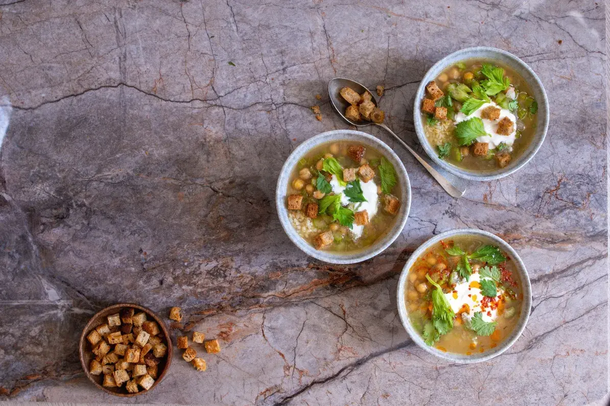 Celerová polévka s cizrnou je lehká a přesto vydatná. Můžete obměňovat podle toho, komu ji servírujete. Malým strávníkům do ní dejte krutonky, velkým přidejte chilli olej.