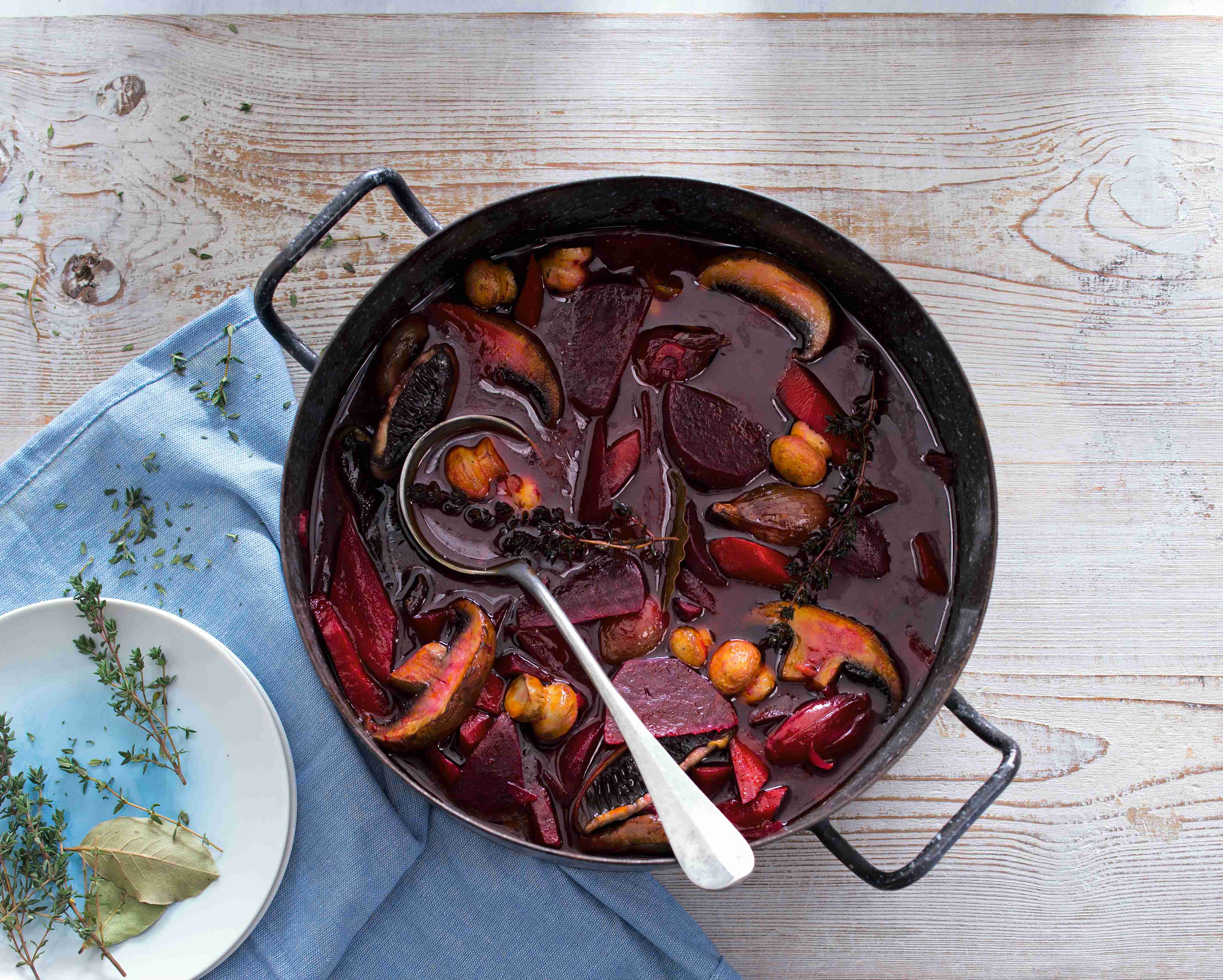 O tohle bezmasé ragú se po focení v redakci strhl doslova boj. Milovníci řepy ho ocenili jako výjimečný zážitek, ale chutnalo i těm, kteří řepu obvykle moc nemusejí. Bez ohledu na to, do kterého z těchto dvou týmů patříte, červená řepa po burgundsku si vás jistě získá. A tady je recept.
