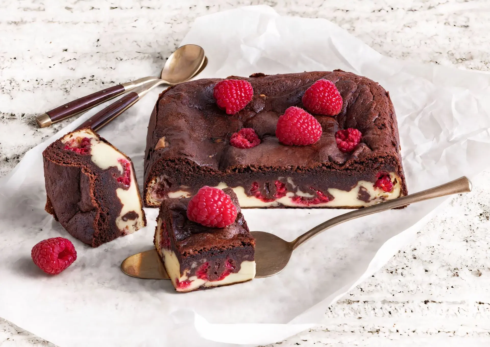 Cheesecake brownie s malinami je, jak sám název napovídá, báječná kombinace sametového cheesecaku, vláčného brownie a sladkokyselých malin. Zaručujeme, že tento dezert uspokojí i toho nejnáročnějšího gurmána.