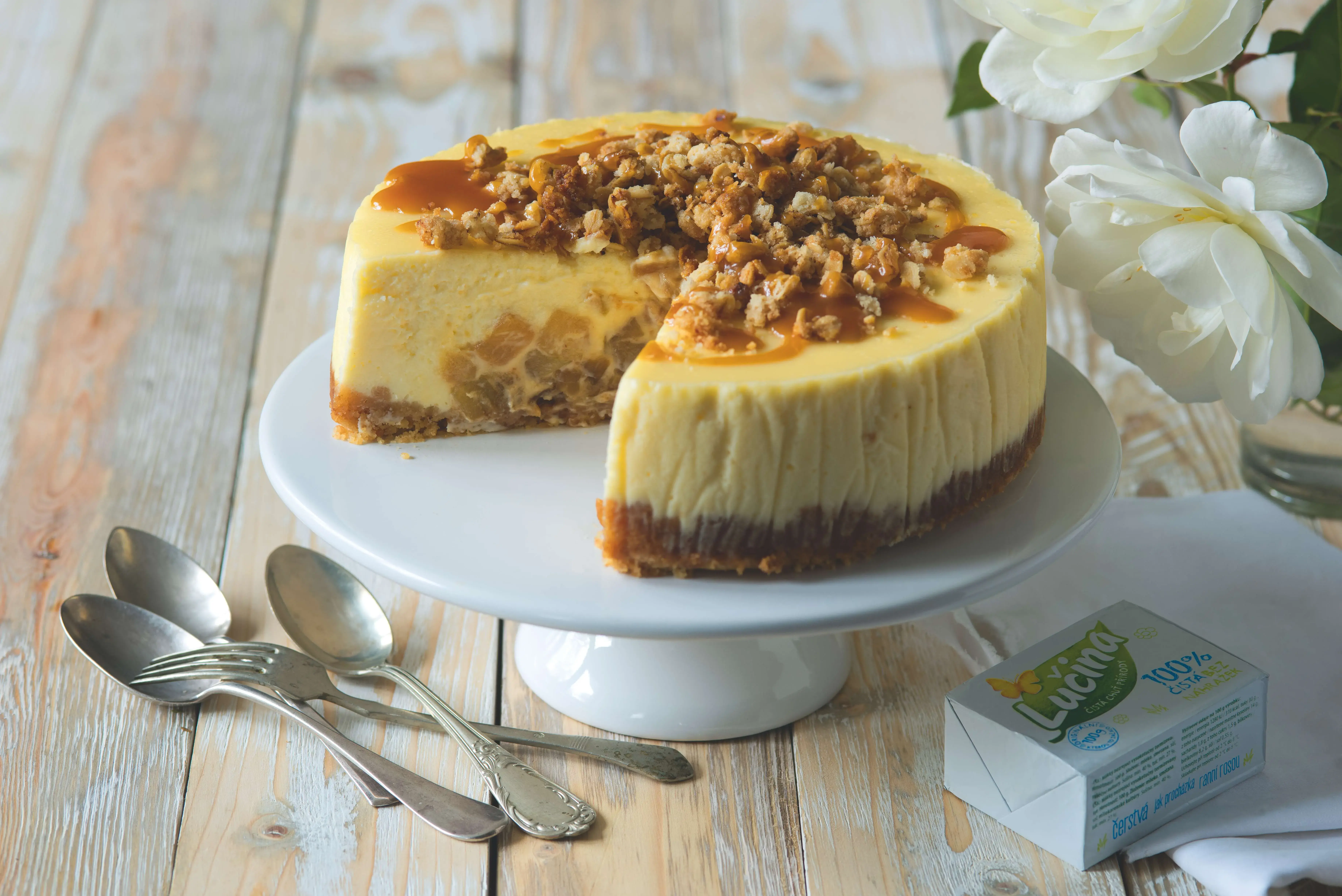 Melancholické počasí podzimu a zimy přímo volá po dezertu, který pohladí po duši. Hedvábně krémový cheesecake z Lučiny s karamelovými jablky a křupavou drobenkou je přesně tou pravou volbou! Rozmazlete se...