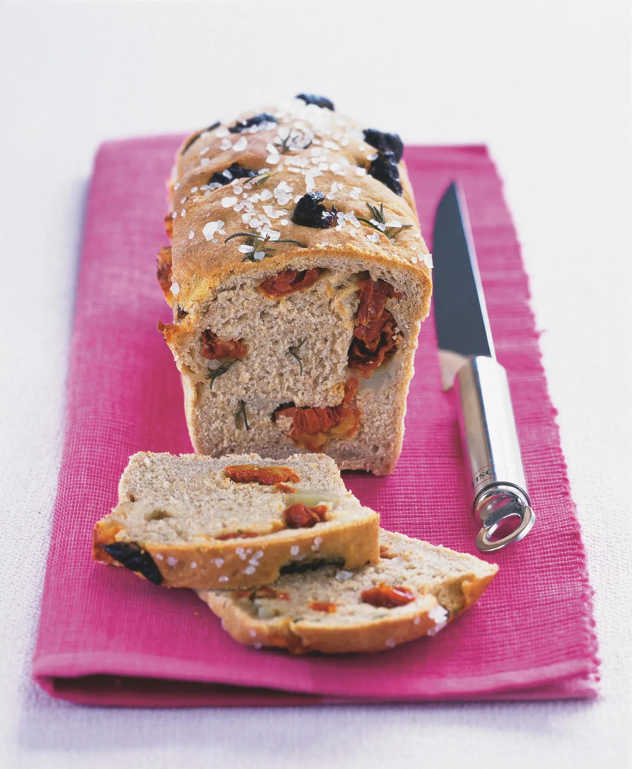 Díky kouskům sušených rajčat a sýru proměníte aromatický chléb v báječné jídlo na malý hlad. Je vynikající ještě teplý, ale pokud ho necháte vychladnout, zvláční a zpevní.