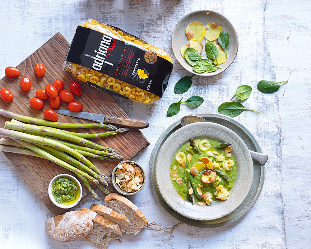 Autor: Redakce, z vydání Apetit Chřestová polévka s funghetto, mandlemi a bazalkou