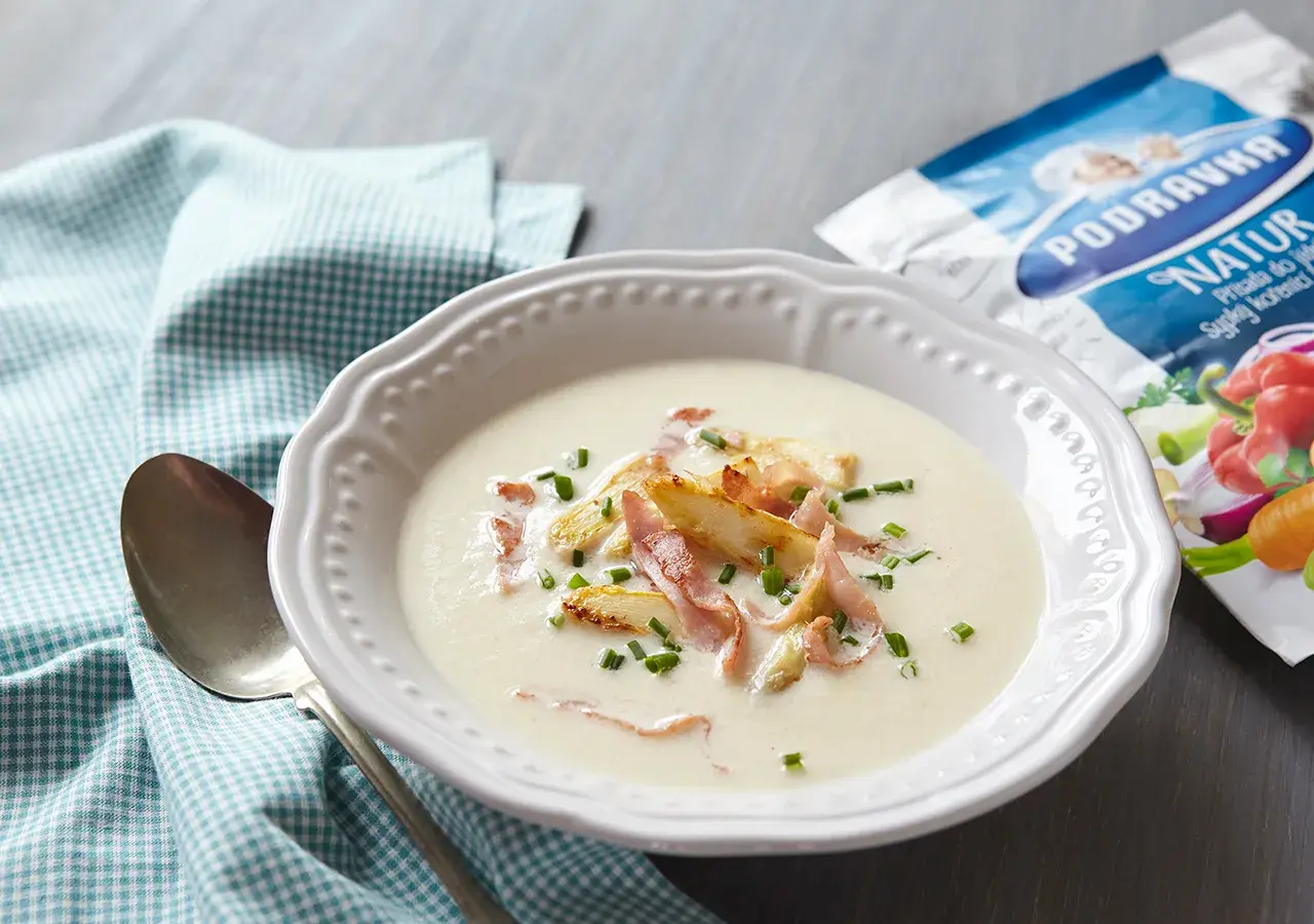 Jemnou krémovou polévku s chřestem a šunkou si oblíbí každý. Pozor na kvalitu chřestu – vybírejte pouze ten čerstvý.