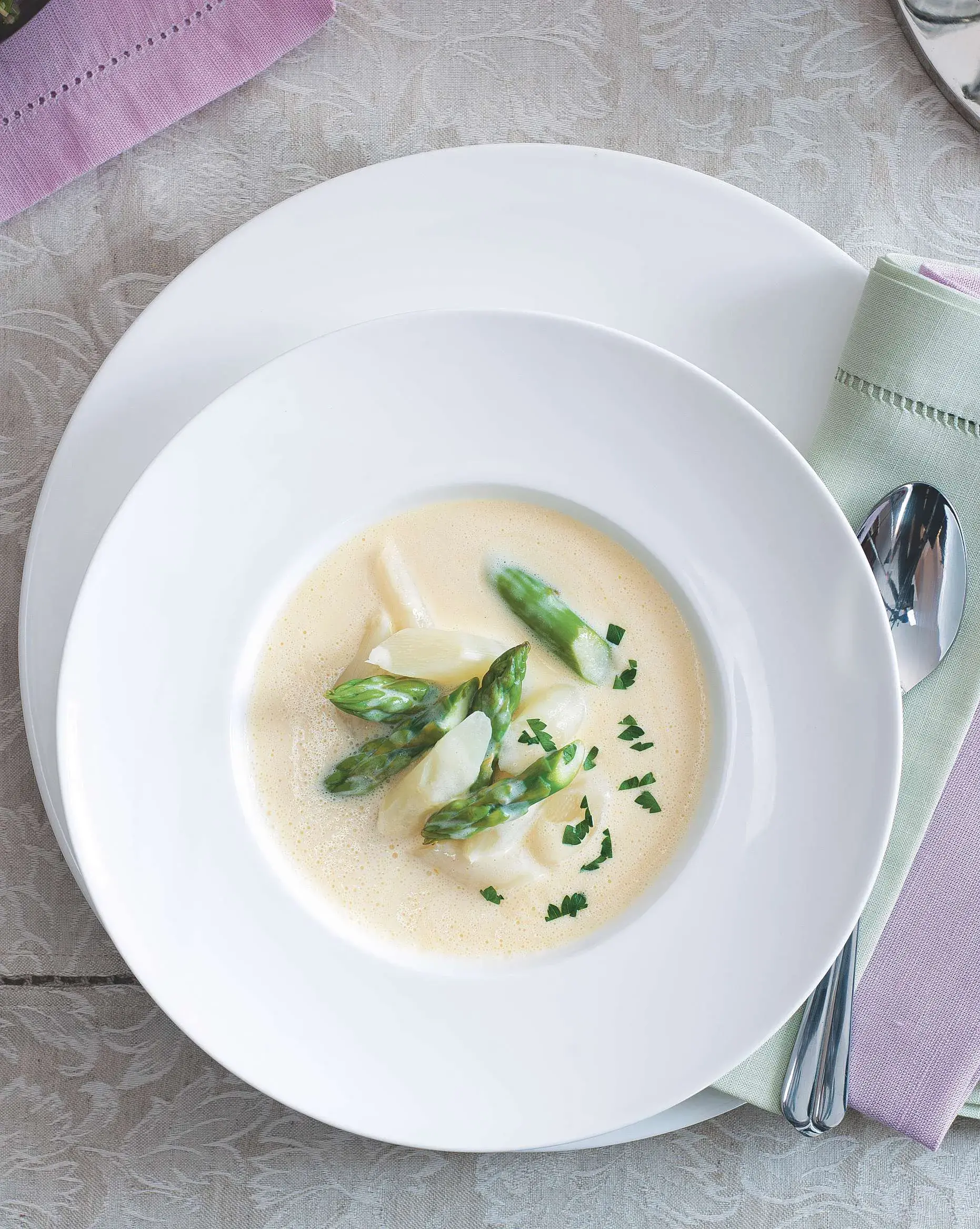Připravte si něžnou hedvábnou krémovou polévku s francouzským šarmem. Pohladí vás po jazyku! Chřestový krém se smetanou vám pomůže odstartovat chřestovou sezónu a probudit ze zimního spánku. Polévka je ze zeleného i bílého chřestu, a proto je skvělou příležitostí, jak u stolu sblížit zastánce obou těchto barev.