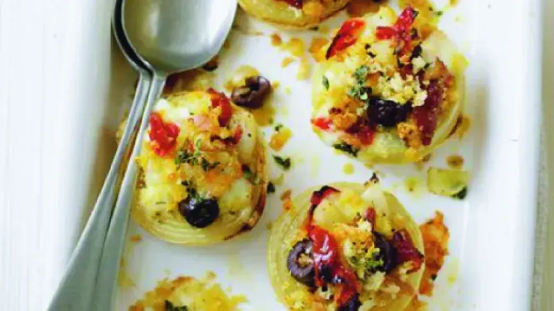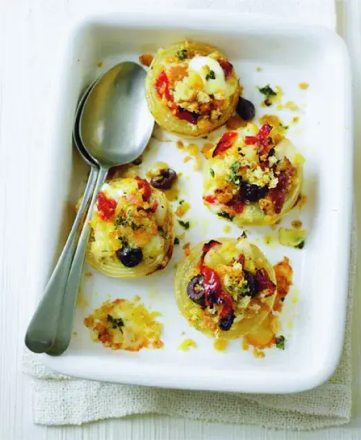 Rychlá zimní večeře. Cibule plněné sýrem, provoněné bylinkami a česnekem.