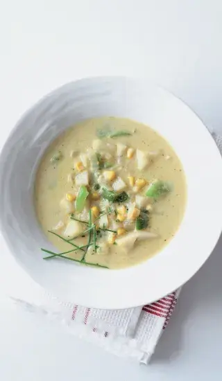 Tahle skvělá a rychlá polévka s lahodnou kukuřicí nám jistě připomíná doby, kdy jsme u babičky loupili na poli mladé kukuřičné klásky