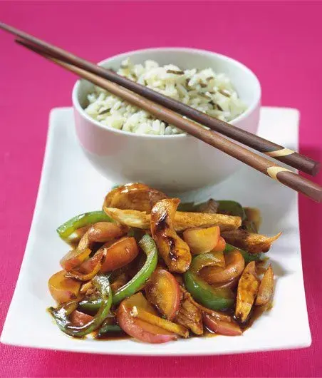 Skvěle ochucené maso se zeleninou a lahodná rýže.