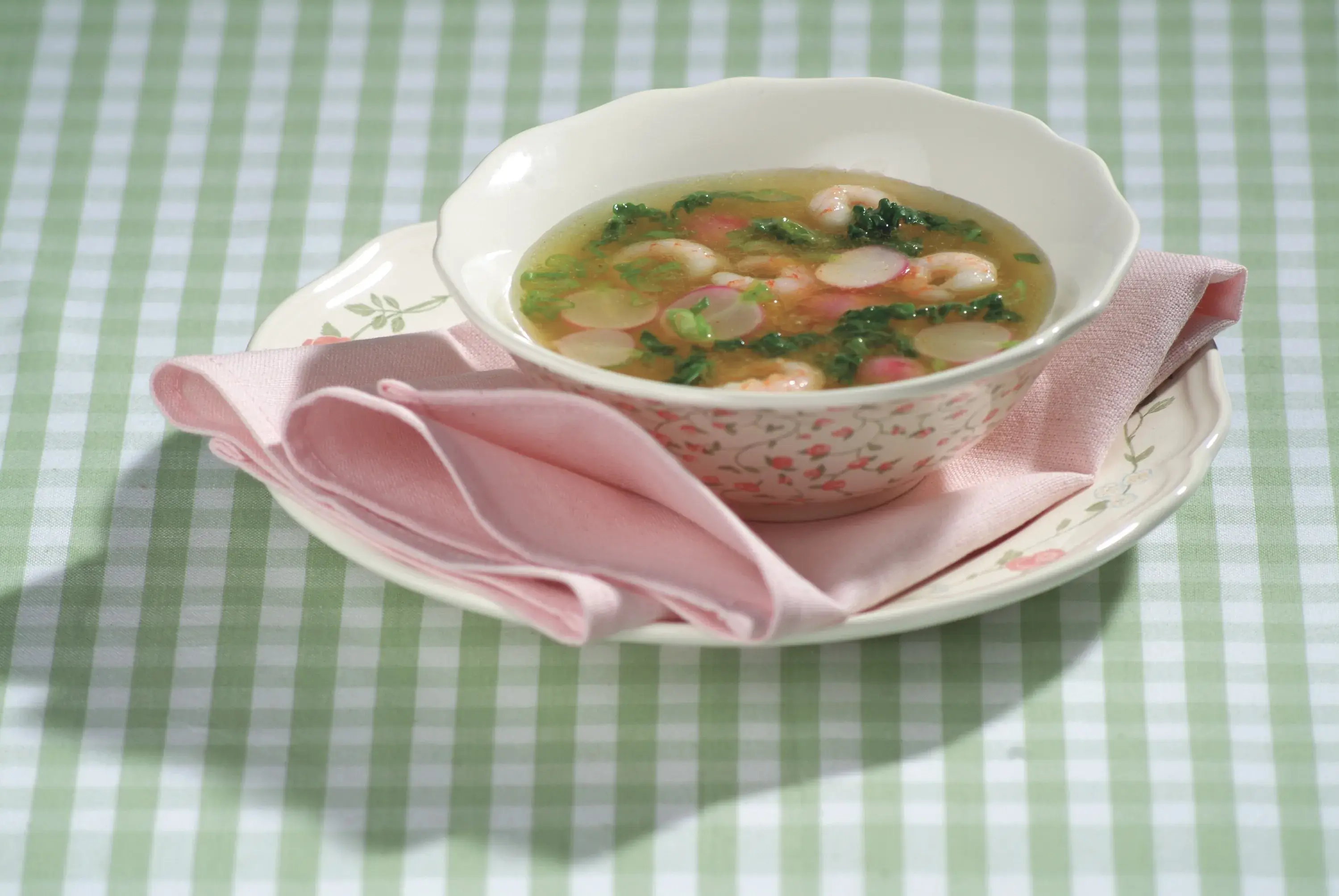 Plátky ředkviček dodají této orientální polévce nejen něžný půvab, ale i švih.