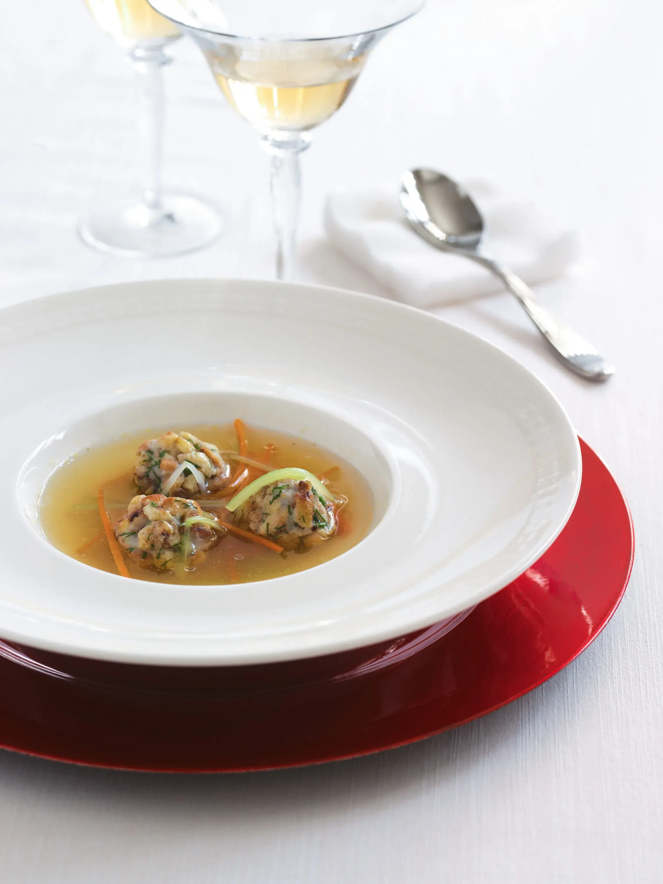 Chcete ohromit své hosty dokonalou vánoční rybí polévkou? Základem této delikatesy je čirý a silný rybí vývar z pečených rybích kostí, cibule a česneku, který díky pomalému táhnutí získá jemnou, avšak bohatou chuť. Rybí knedlíčky navíc promění každou misku v nezapomenutelný zážitek. „Vyhrajte si s přípravou i výběrem vhodné ryby,“ radí šéfkuchař Josef Rychtr, který pro Apetit tuto polévku připravil.