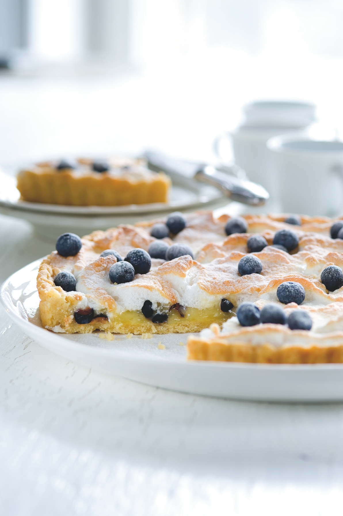 Křehký korpus se svěžím citronovým krémem ozdobte peřinkou z bílkového sněhu. My jsme ho upekli s borůvkami, vy si však vyberte drobné ovoce podle vlastní chuti. Skvělé jsou například také sladké maliny.