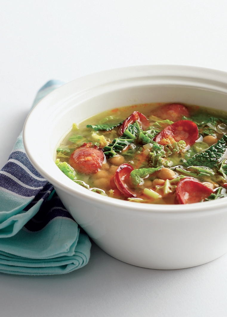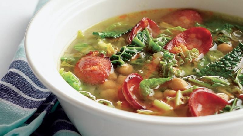 Zajímavá a rychlá polévka. Zkuste cizrnu, kapustu a paprikový salám.