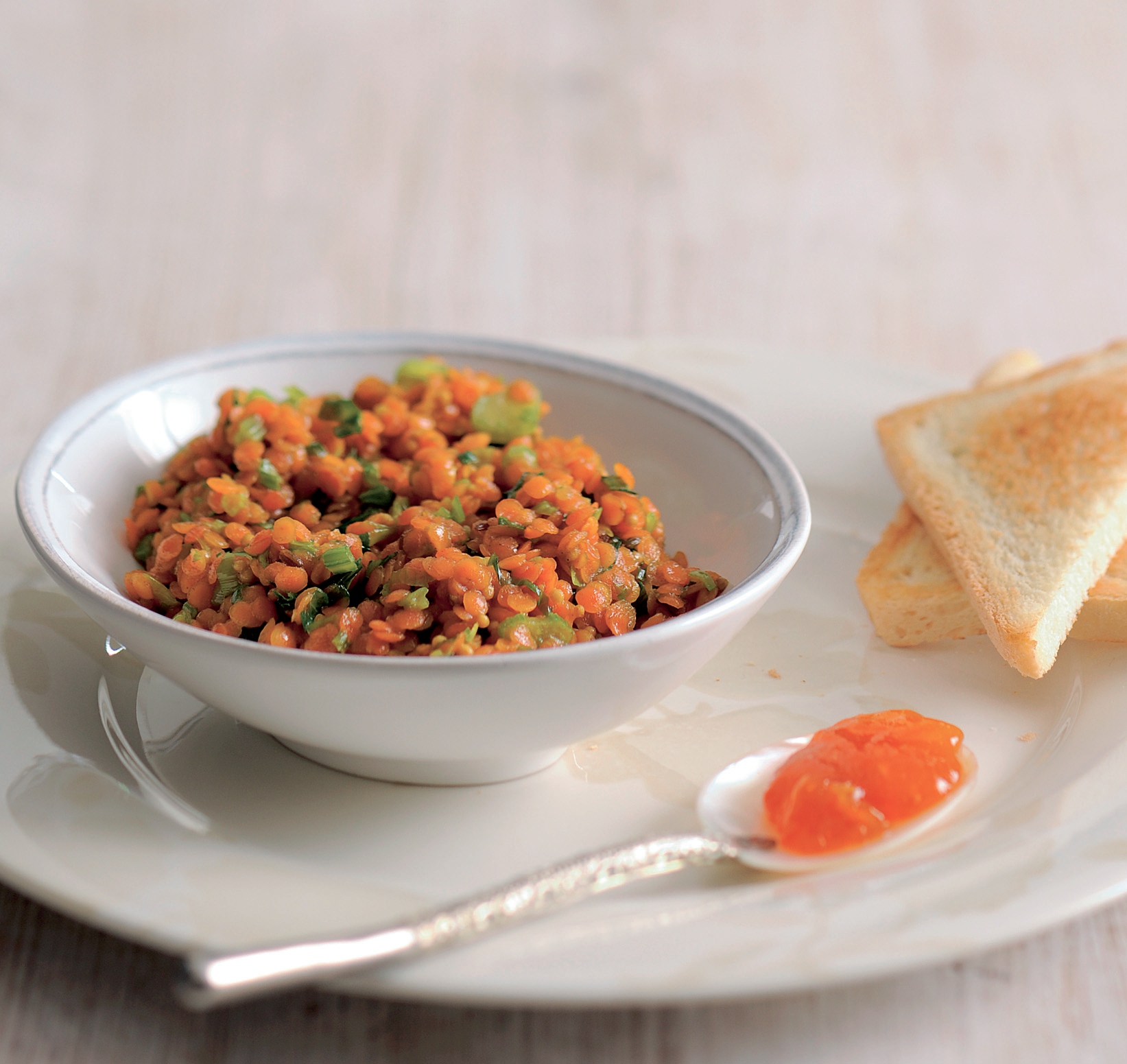 Vegetariánská lahůdka šéfkuchaře Marka Mráze. Největší výhodou tohoto receptu je, že se nemusíte zdržovat namáčením čočky. Používá se totiž červená čočka, která je uvařená za 15–20 minut i bez namáčení. Pochází z Orientu a vyznačuje se jemnou chutí. K dostání je většinou už loupaná, neloupaná má totiž fialovou barvu.