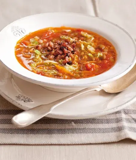 Hřejivá zimní polévka z čočky podle novoroční pověry nosí peníze. Ale tato čočková polévka s rajčaty si rozhodně zaslouží vaši pozornost i kdykoliv jindy během roku. Je hustá, vydatná a pořádně zasytí. Nezapomeňte ji stejně jako my podávat s křupavými krutony z bílého pečivo. V tomto podání si čočkovku skutečně zamilujete.