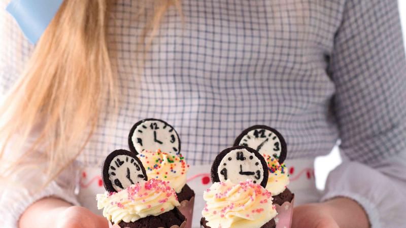 Tik tak – je čas na něco dobrého! Hodinkové cupcaky se budou hodit i na oslavu konce roku.