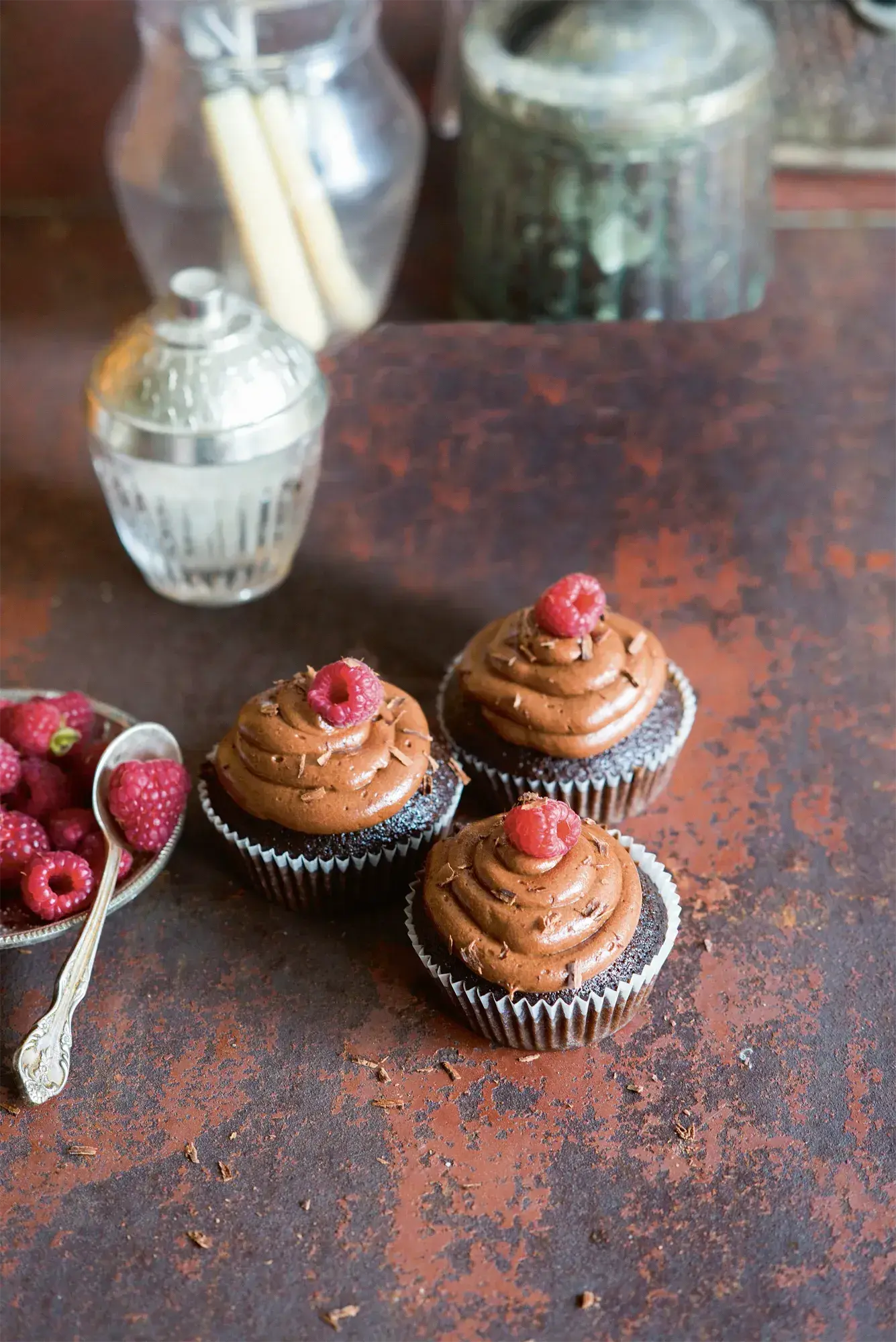 Čokoládové cupcaky s čokoládovým krémem a malinami vás nadchnou svým vzhledem a extrémně čokoládovou chutí. Čerstvá malina na hutném krému je drobným, zato velmi vítaným osvěžujícím prvkem.