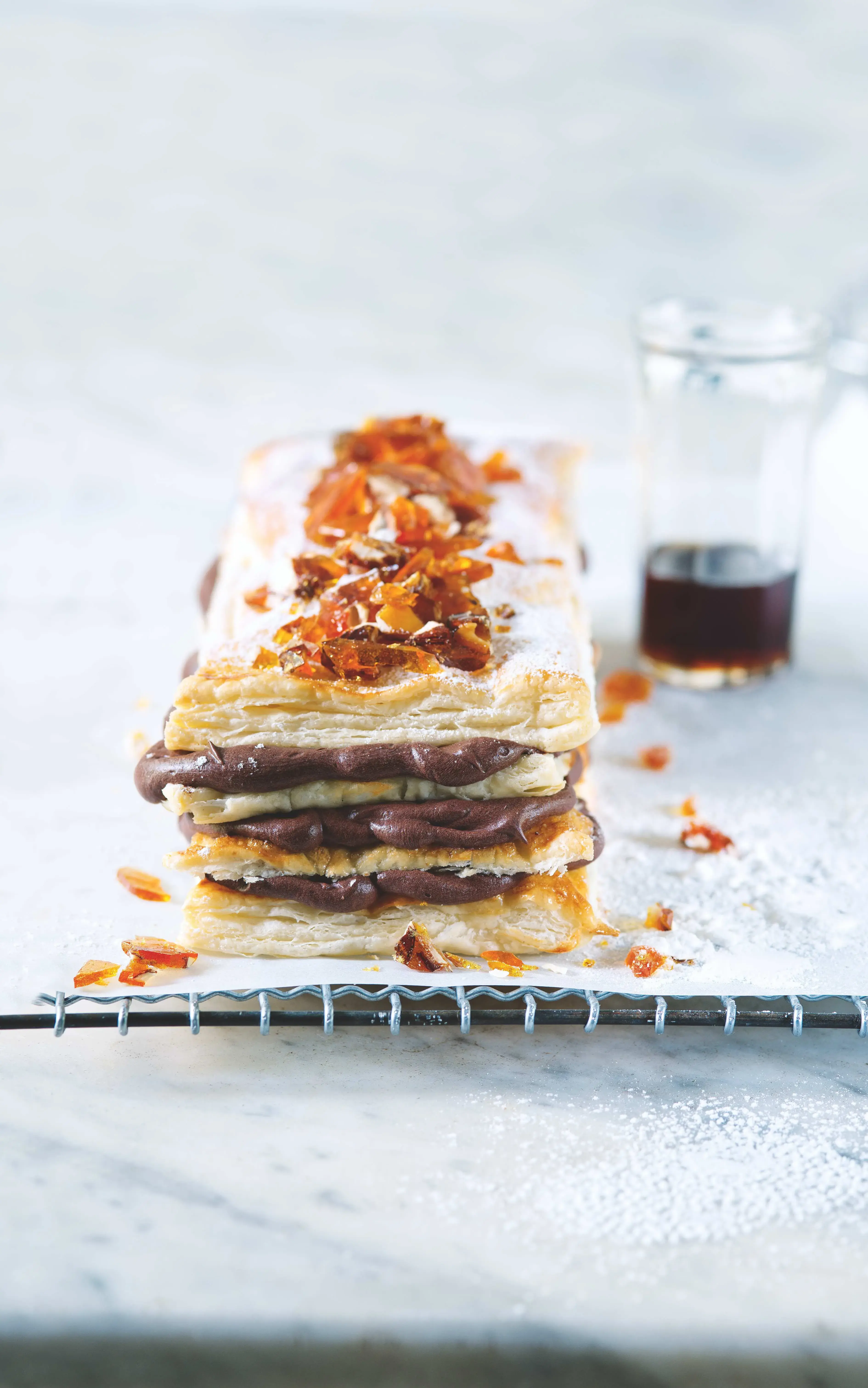 Tenhle dokonalý francouzský dezert má mnoho variací – hlavní jsou křupavé pláty listového těsta. Jejich naplnění je už pak věcí fantazie. Do naší čokoládové verze můžete místo griliáše dát čerstvé maliny.