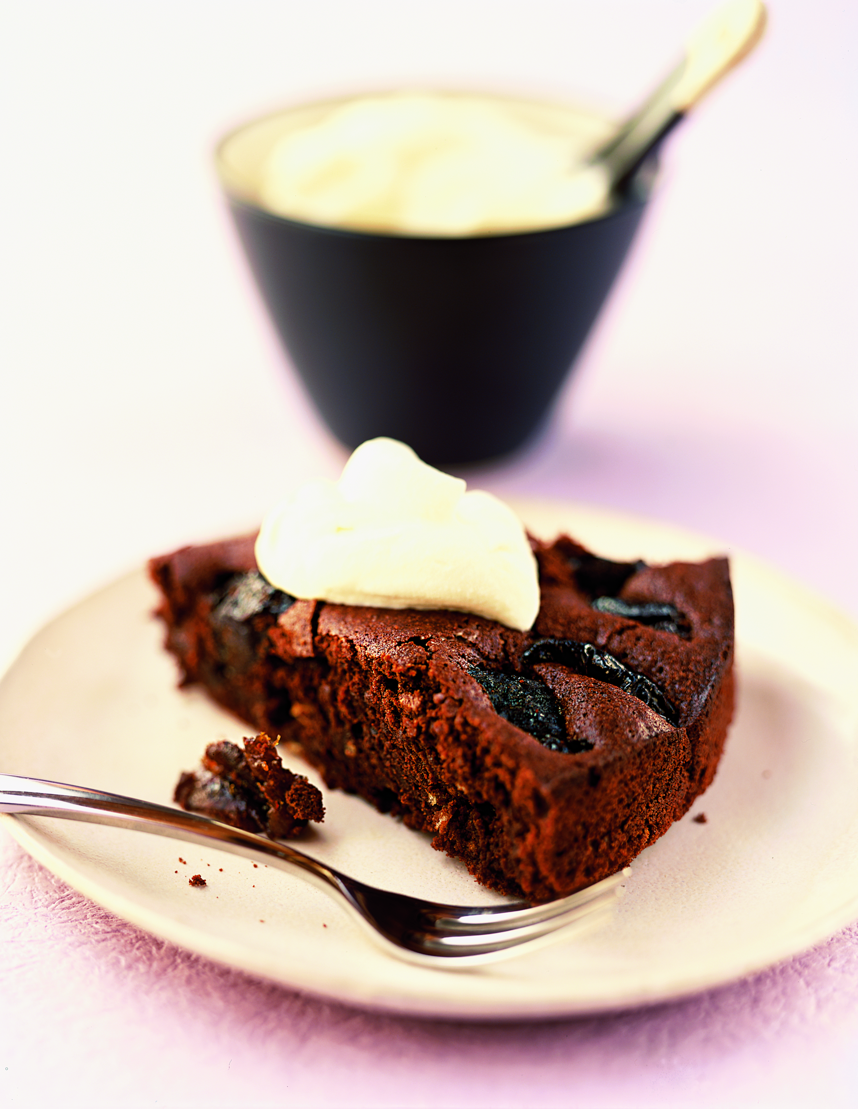 Šťavnatý díky ,opilým švestkám‘ a podávaný ještě vlažný, s kopečkem šlehačky nebo zakysané smetany – to je koláč pro opravdové milovníky (čokolády).