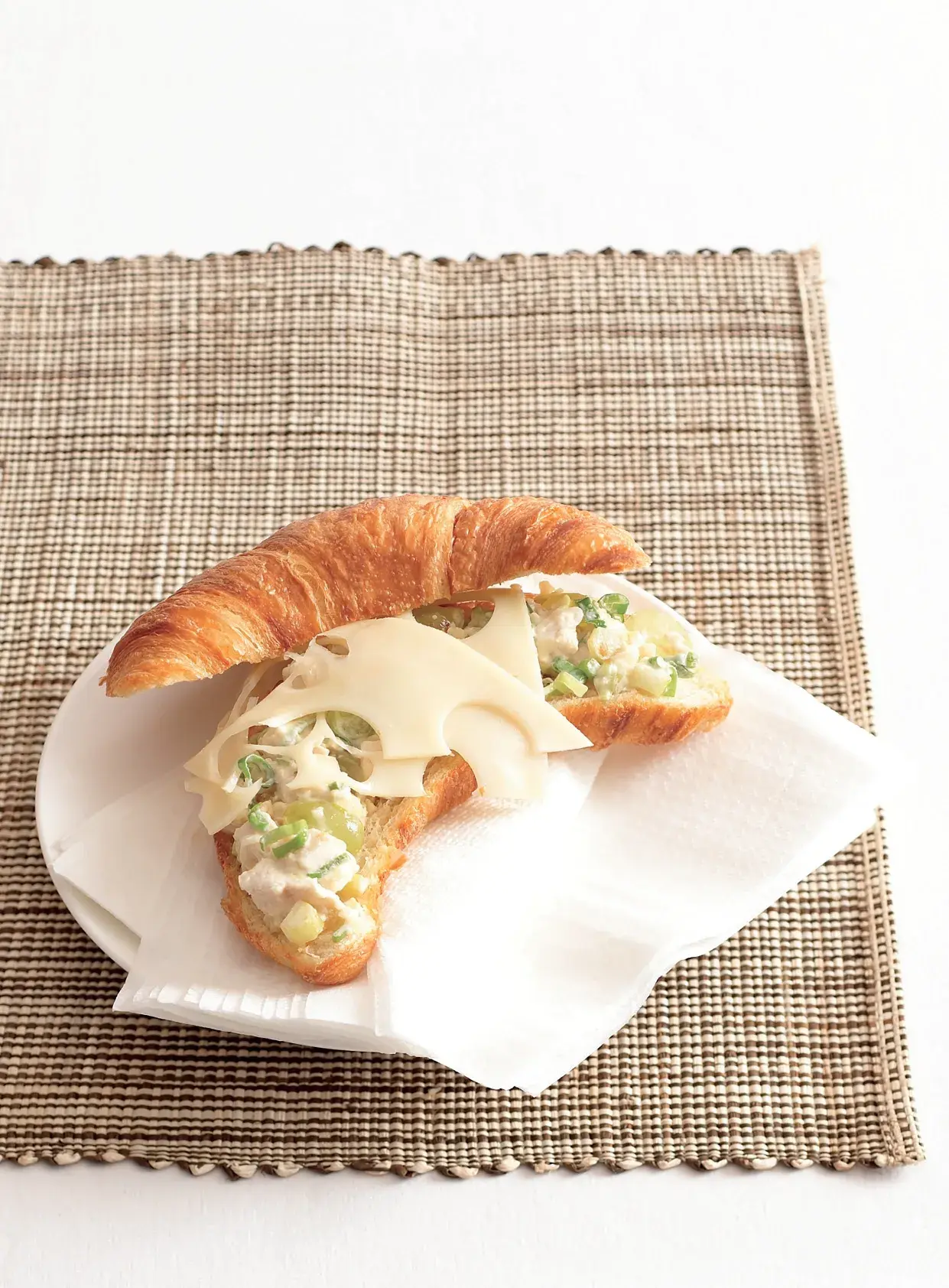 Chutná odpolední svačinka nebo rychlá večeře. Salát, hroznové víno, celer, sýr, oříšky. Croissant můžete opéct.