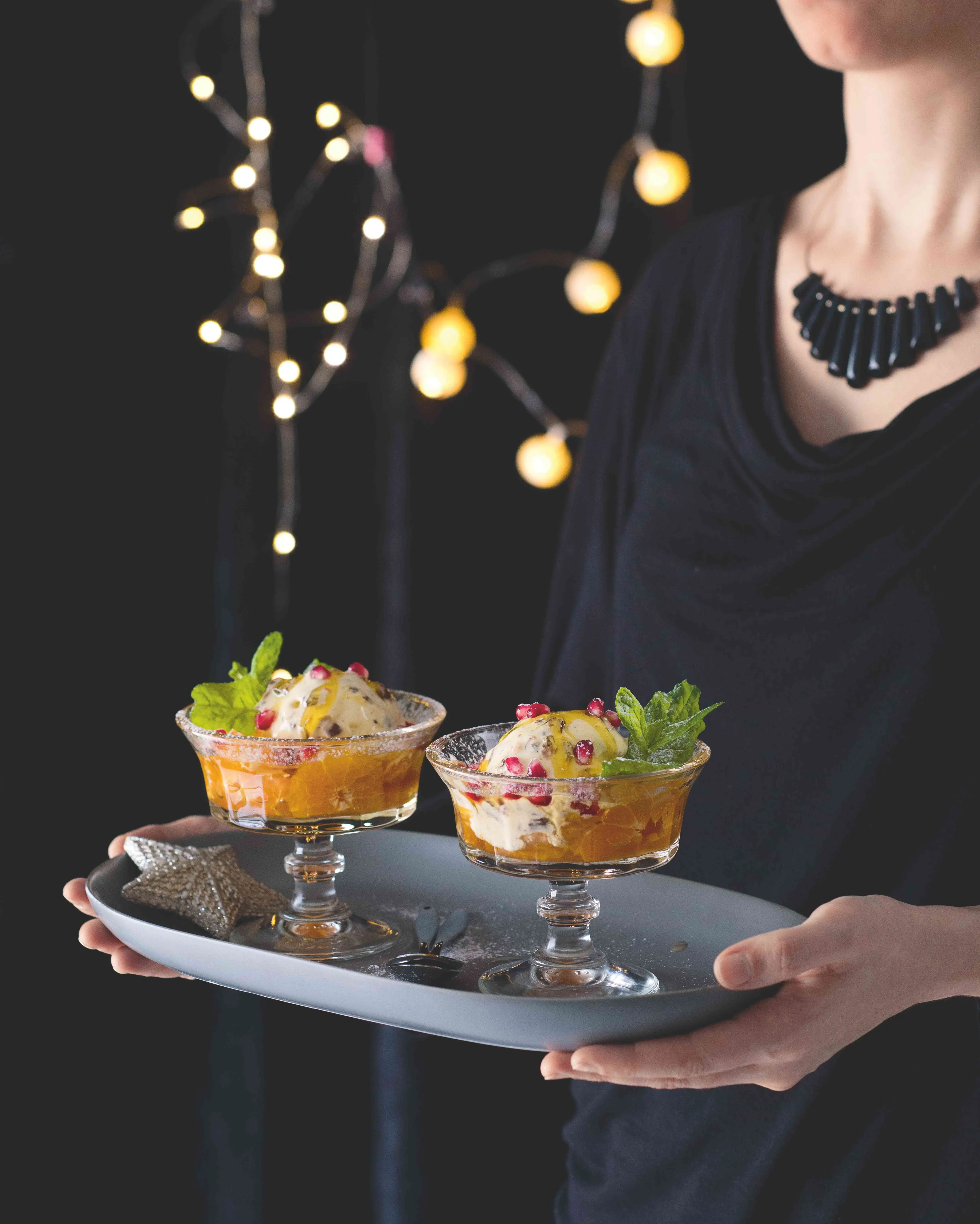 Zakončete dokonalou vegetariánskou hostinu neodolatelným dezertem. Sladká datlová zmrzlina se špetkou chilli a svěží mandarinkovou omáčkou je přesně to pravé!