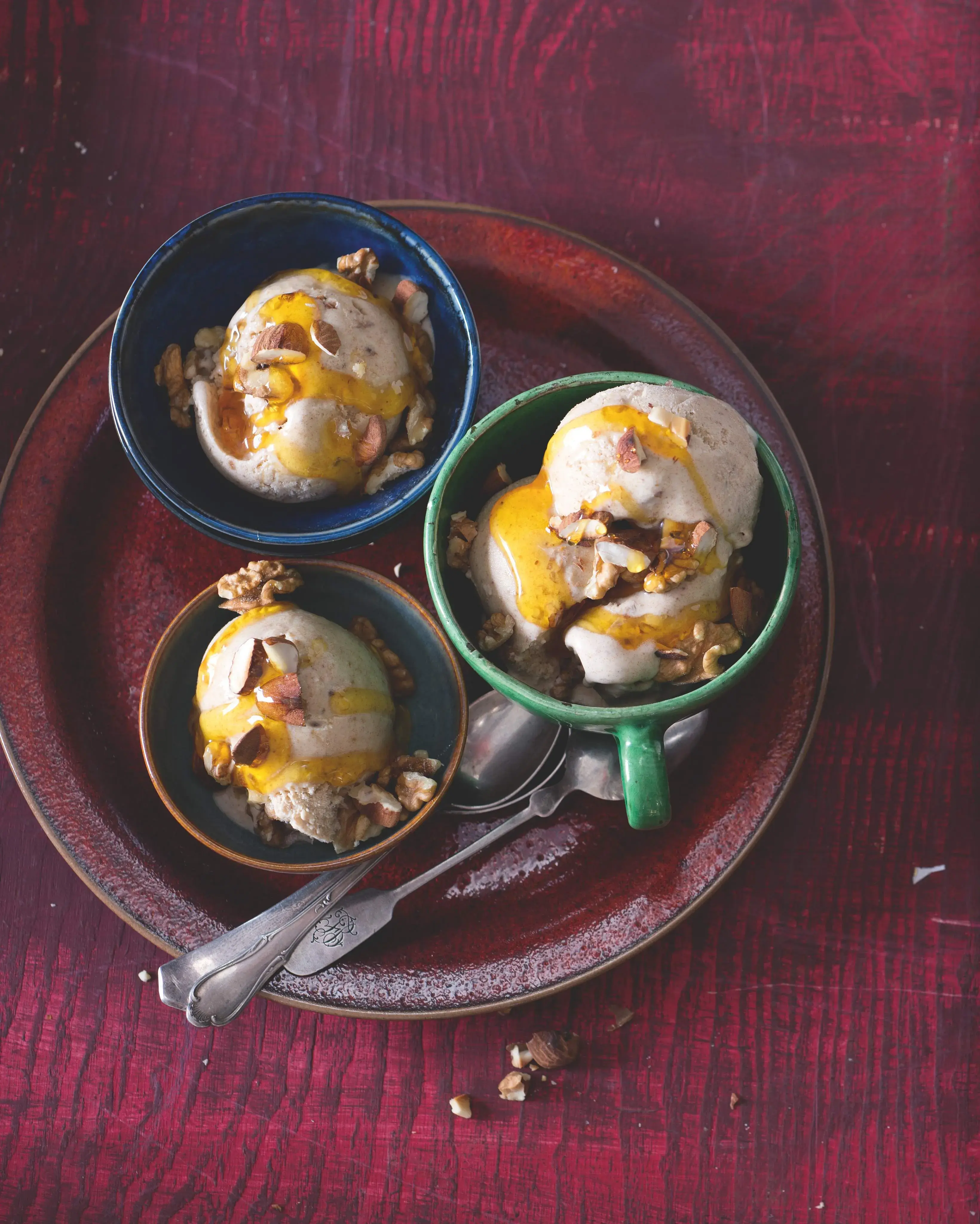 Na focení jsme ochutnali alkoholovou variantu a zmizela, než se stačila rozehřát. Domáci datlová zmrzlina s vlašskými ořechy je díky ovoci přirozeně sladká a ořechy jí dodávají krásně křupavou strukturu. Nedá se jí odolat.