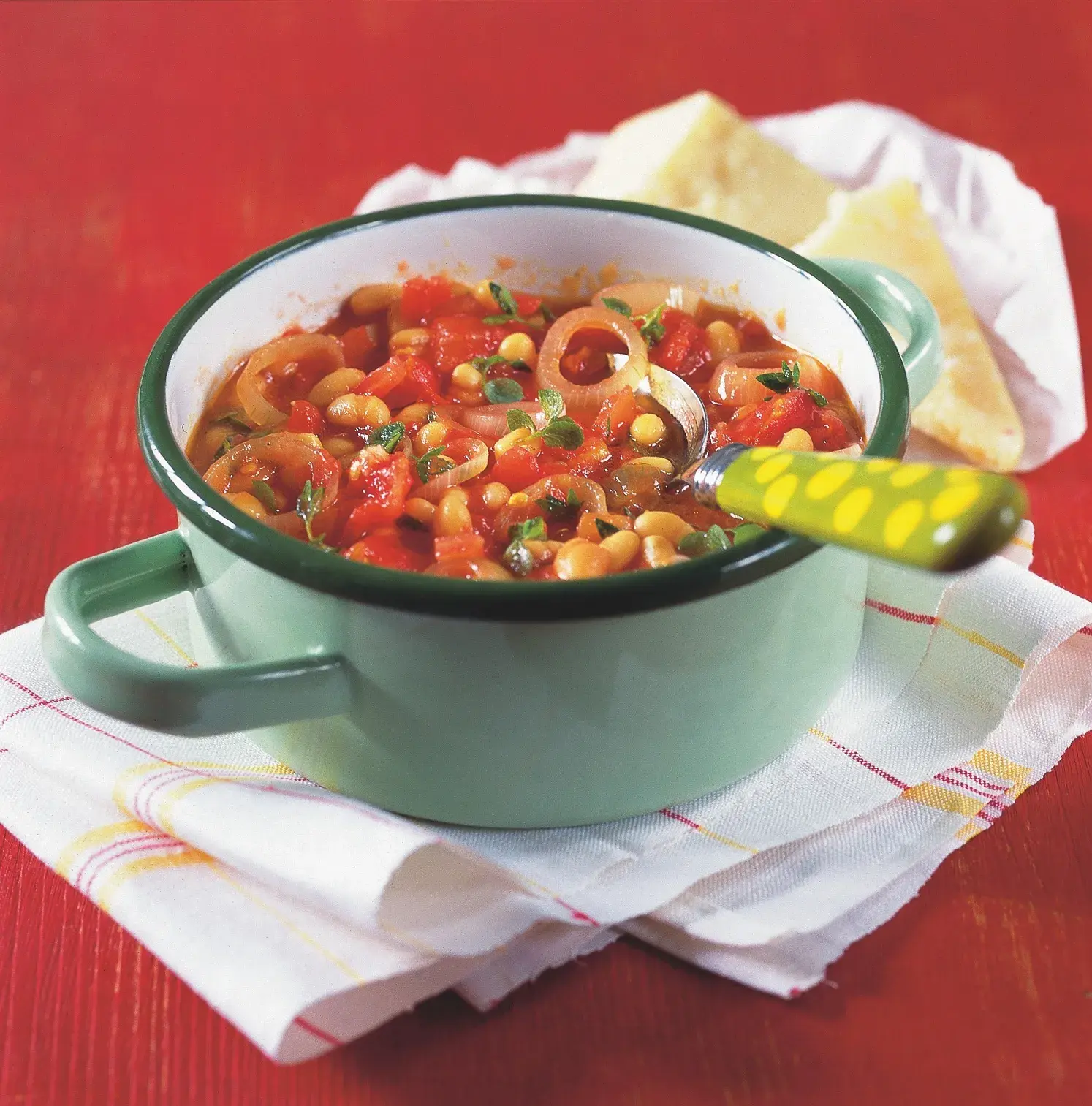 Spojení konzervovaných fazolí a čerstvých rajčat je přímo neodolatelné. Oregano a tymián dodají téhle rychlovce středomořskou vůni, která vám i uprostřed podzimu připomene prázdniny.