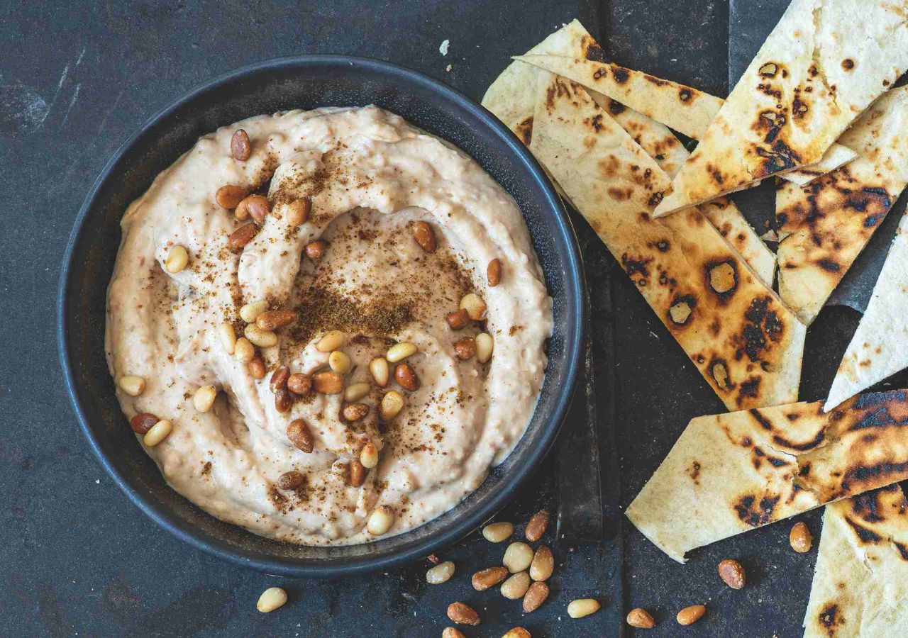 Pro luštěninové pomazánky a dipy máme slabost. Ten z bílých fazolí a česneku je dokonale krémový. Pinie dodávají dipu texturu a element křupavosti. Dip můžete připravit až dva dny dopředu a uchovat jej v lednici. Před podáváním nechte dojít pokojové teploty.