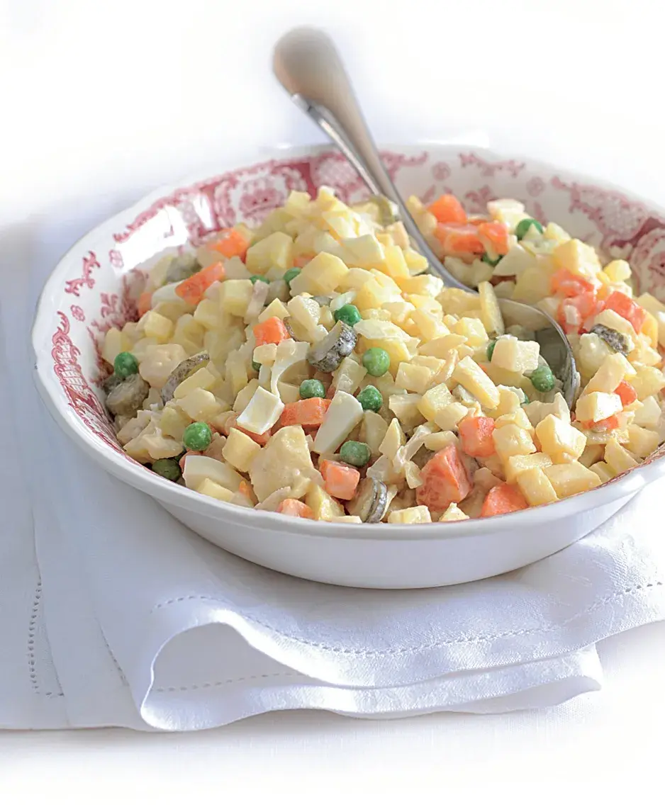 Připravte si poctivý bramborový salát jako od maminky! Tento tradiční recept na bramborový salát se skvěle hodí nejen k vánočnímu menu, ale i jako sváteční bramborová příloha k nedělní pečínce. Pokud zeleninu nakrájíte nadrobno, snadno z něj vykouzlíte i jemnou pomazánku na veku. Chlebíček s bramborovým salátem zůstává nestárnoucí klasikou, která nesmí chybět na žádné rodinné oslavě ani vánočním stole.