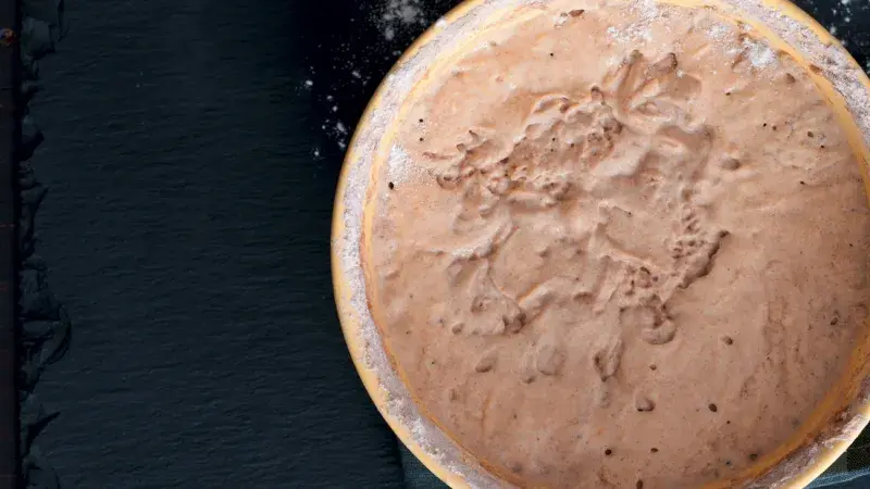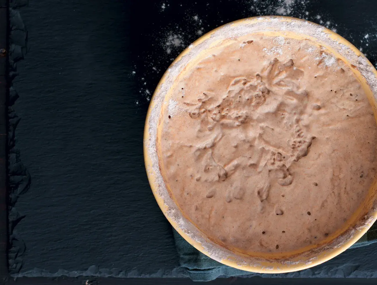 ✷ Jak trefně poznamenala kolegyně Katka Švejdová, kvásek je jako tamagoči. Je třeba ho pravidelně krmit a uchovávat v přikryté, ale ne hermeticky uzavřené nádobě při teplotě zhruba do 20 °C (anebo dát do chladničky, tam vydrží spát i několik týdnů).