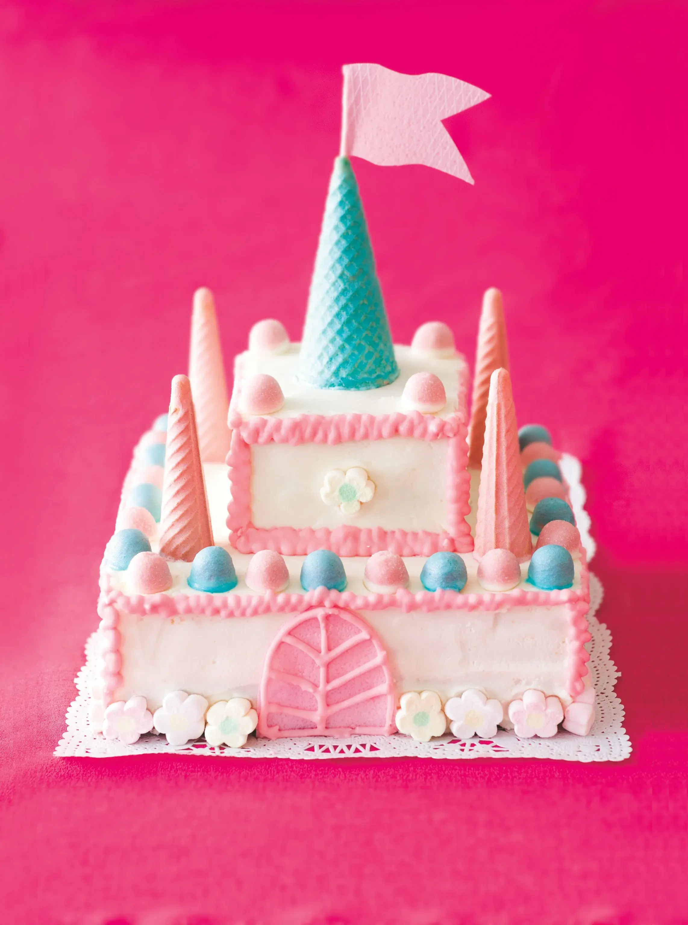 Typicky dívčí dort pro všechny malé (i velké) princezny. Když vynecháte růžovou barvu a použijete různé odstíny modré, máte dort na populární téma Ledové království!