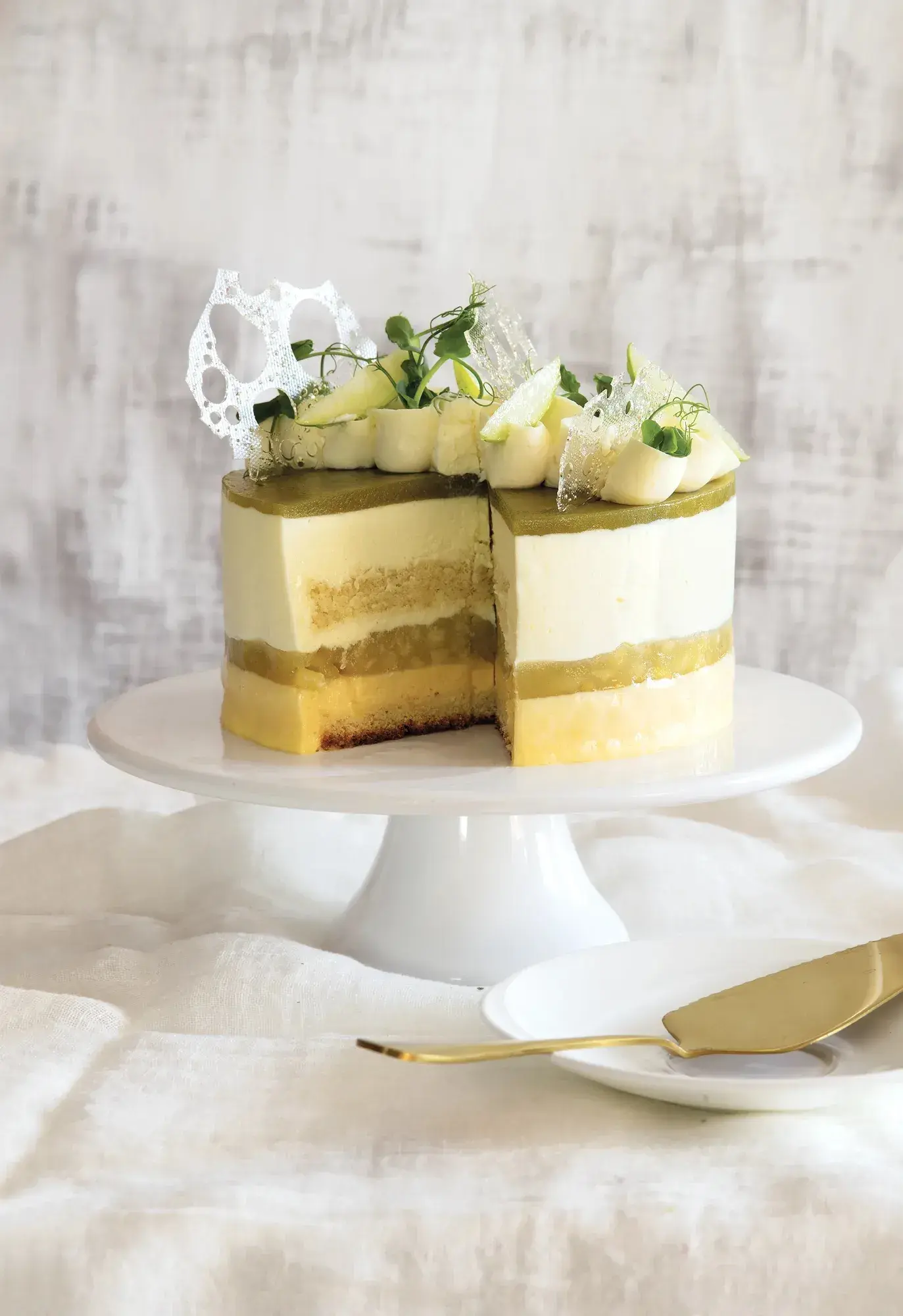 Netradiční pastelový dort pro ty, kteří si nepotrpí na jahody a maliny, ale přesto ocení, když je dezert ovocný a lehký. Zelené jablko okouzlí jak chutí, tak efektním, a přesto lehkým zdobením.