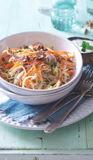 Hutný dresink s výraznou chutí i vůní sluší svěžím lehkým salátům složeným výhradně z čerstvé zeleniny.