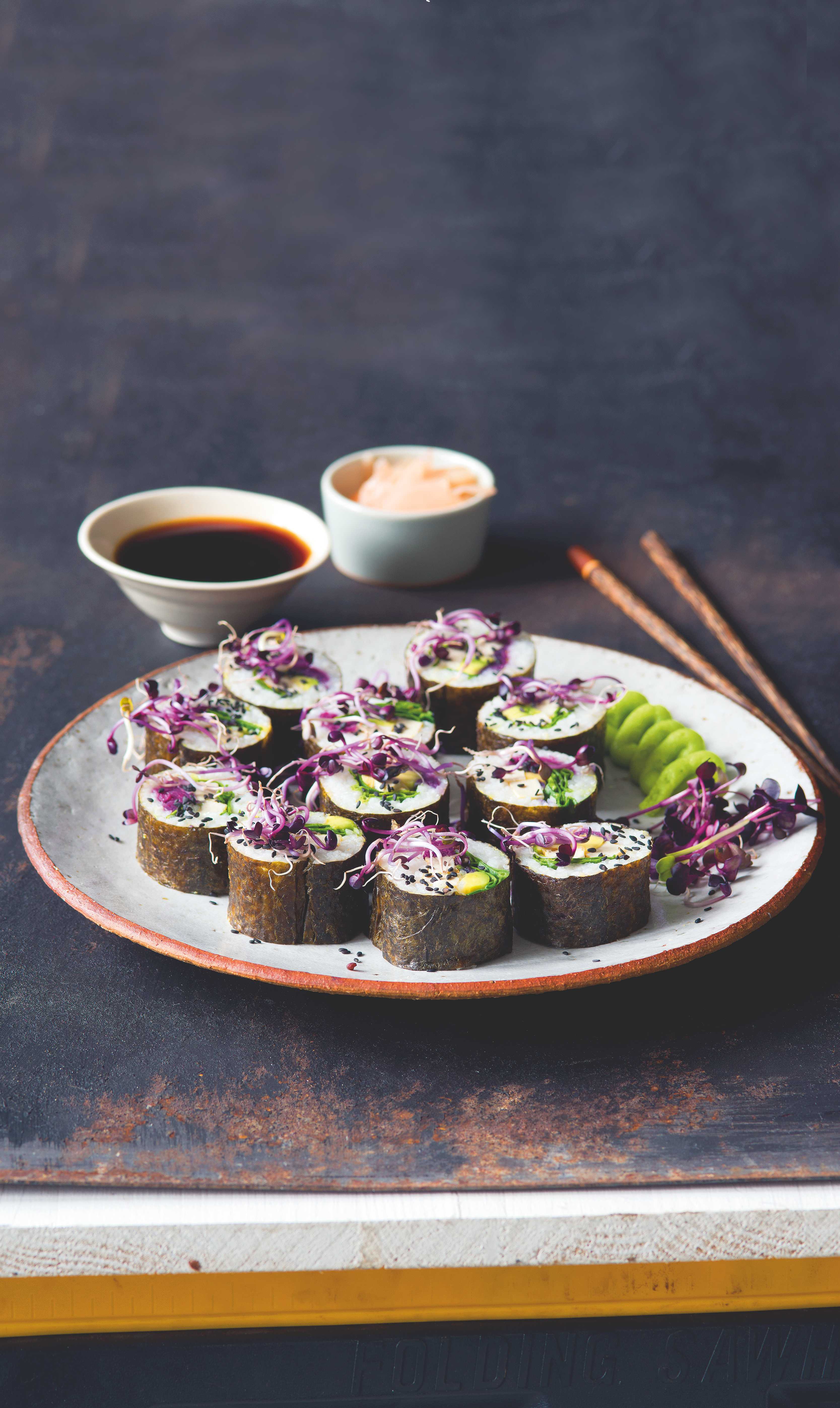 Náplň duhových rolek suši se dá obměňovat podle toho, co je zrovna nejčerstvější. A pro nevegetariány můžete přidat rybu v suši kvalitě.