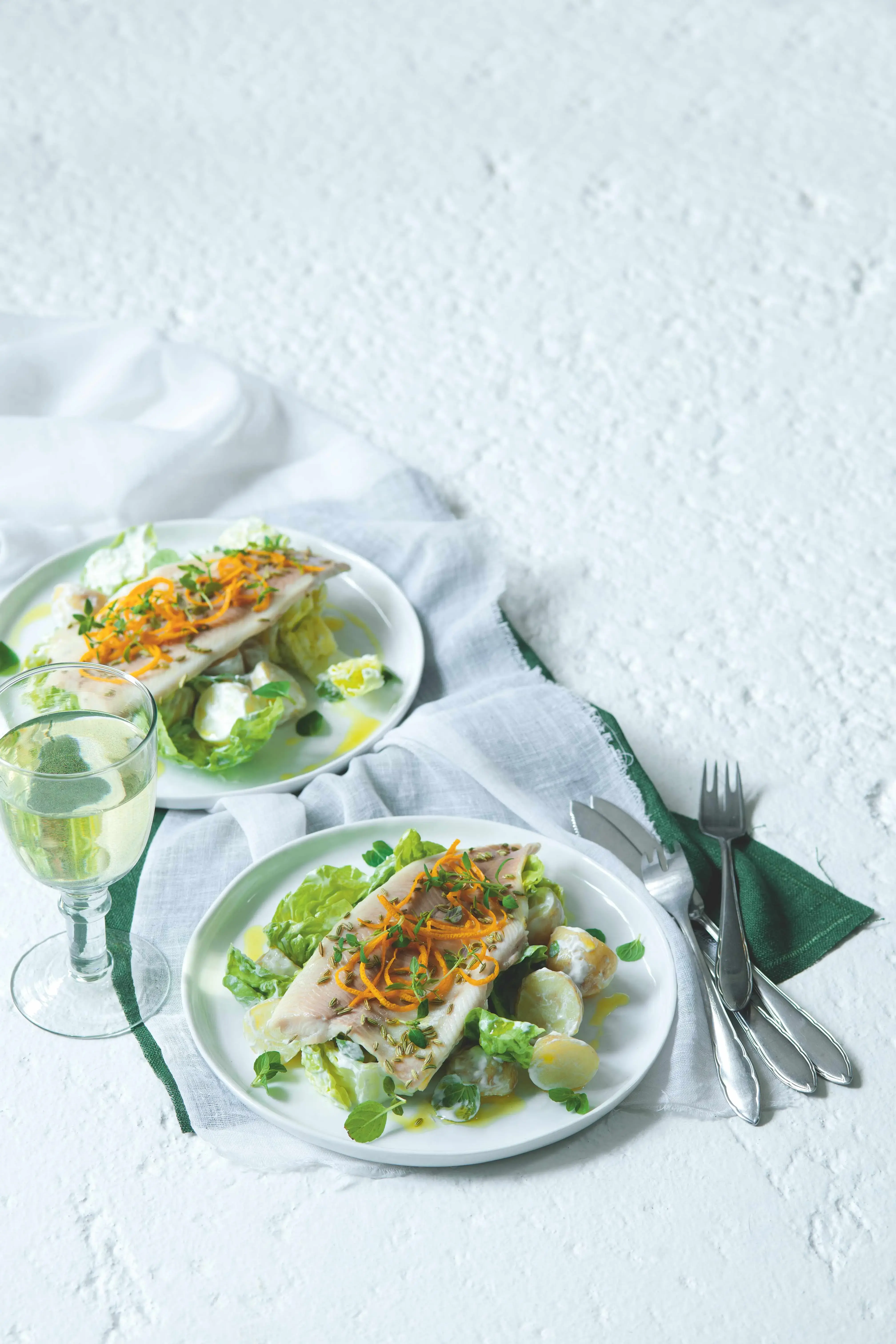 Z filátek ze pstruha s teplým bramborovým salátem vykouzlíte lehké letní jídlo raz dva.