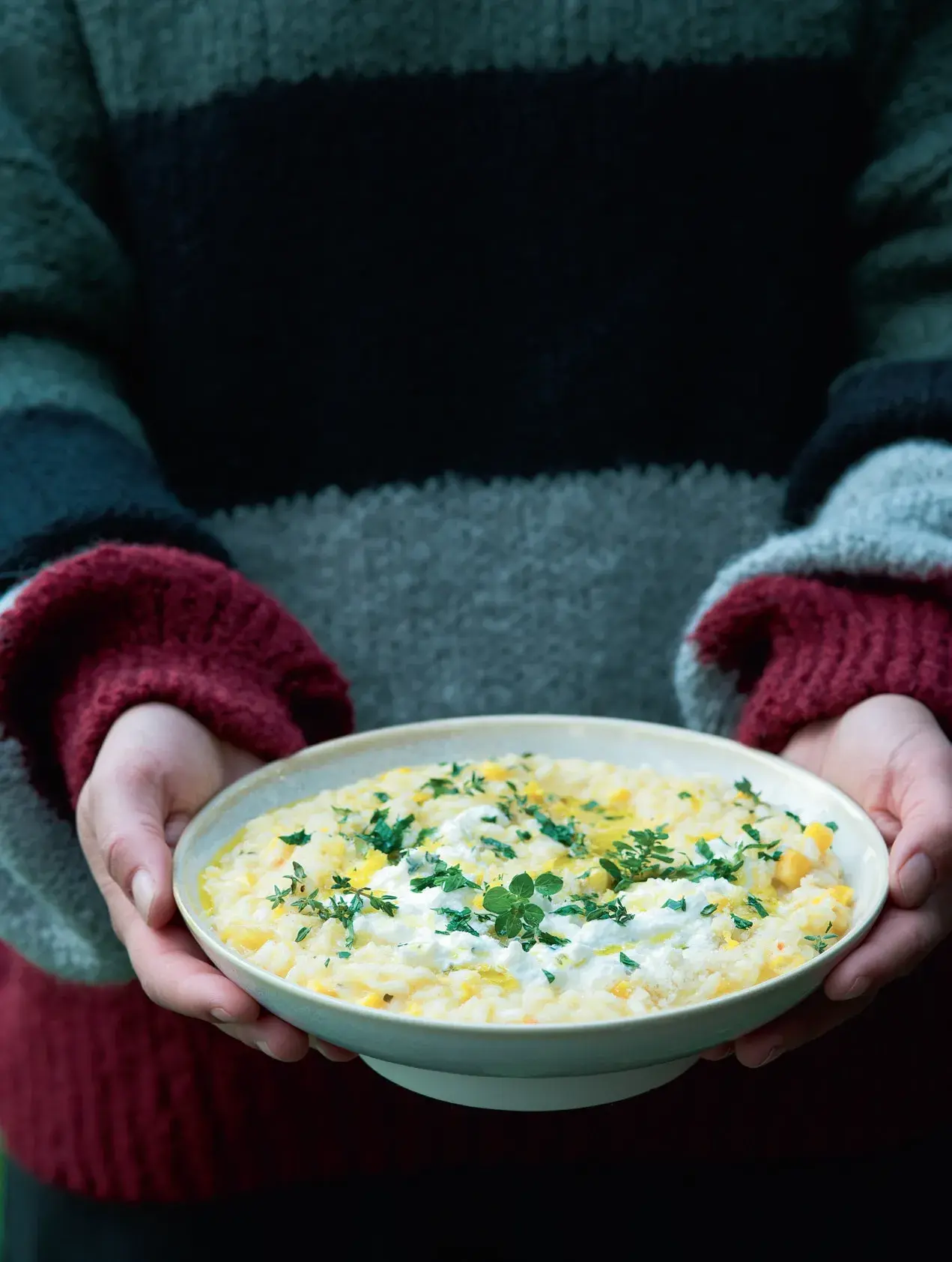 Ricotta jde s dýní skvěle dohromady. Celkově jemnou konzistenci příjemně rozbije kukuřice přidaná na poslední chvíli...