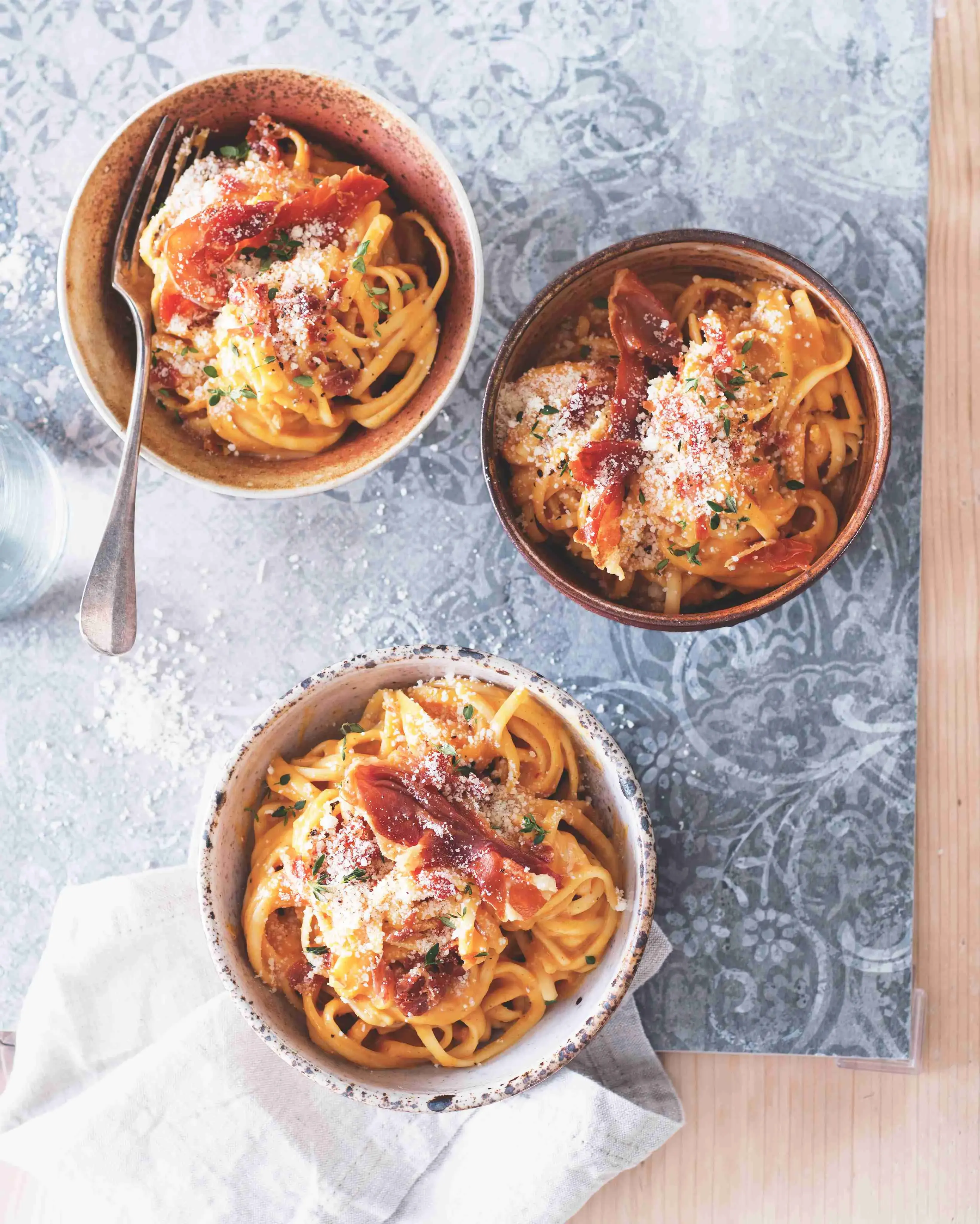 Kdo by nemiloval těstoviny? Zkuste nápaditou variantu s máslovou dýní. Jde o vyvážené zimní jídlo s maximem chuti, kterým okouzlíte nejen rodinu, ale i své přátele. Recept na dýňové špagety připravíte rychle a pokud vynecháte prosciutto, můžete je servírovat i vegetariánům.