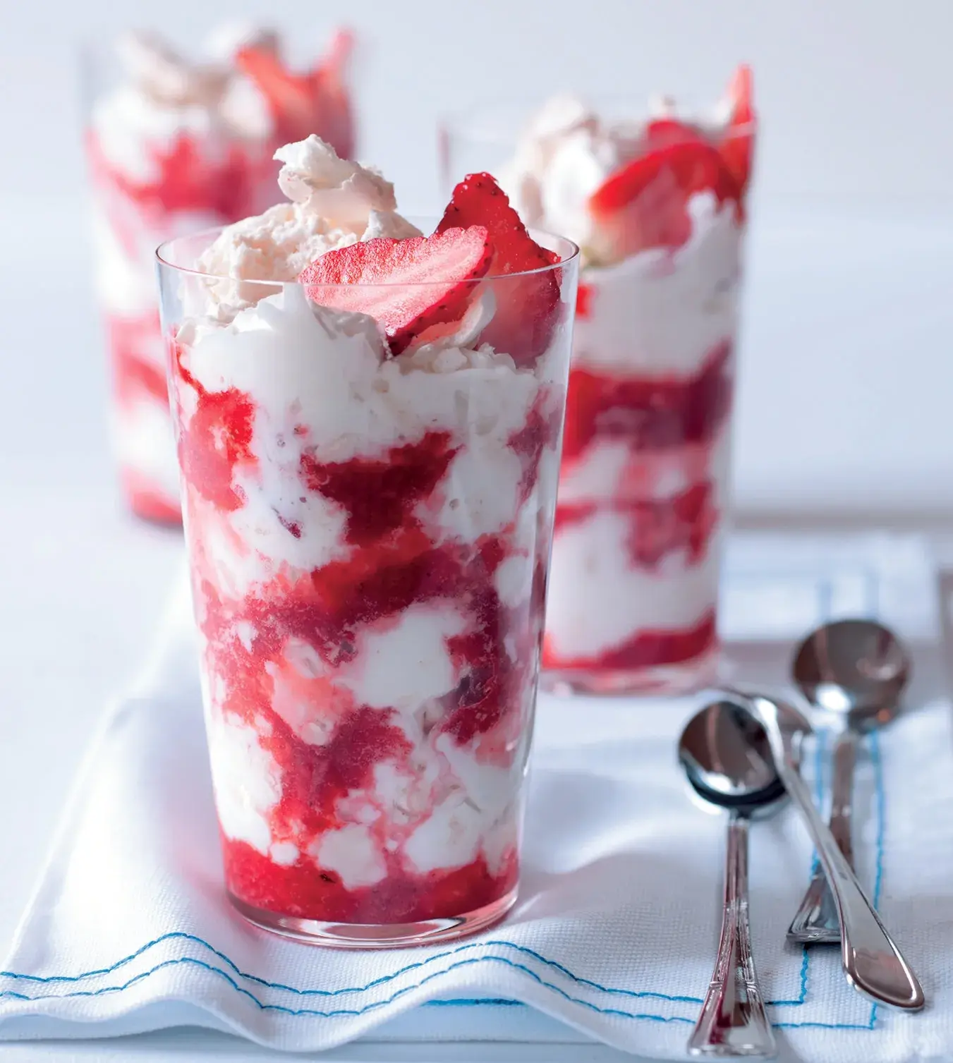 Nepopsatelně dobrá směs pusinek a čerstvých jahod dostala název podle britské Eton College, kde se podává při tradičním zápasu v kriketu. Připravte si tento jednoduchý ovocný pohár v sezóně, kdy jsou jahody v plné síle. Doporučujeme si pusinky upéct do zásoby a pak už vám samotná příprava zabere jen několik málo minut. Eton mess je luxusní dezert z pěti surovin.