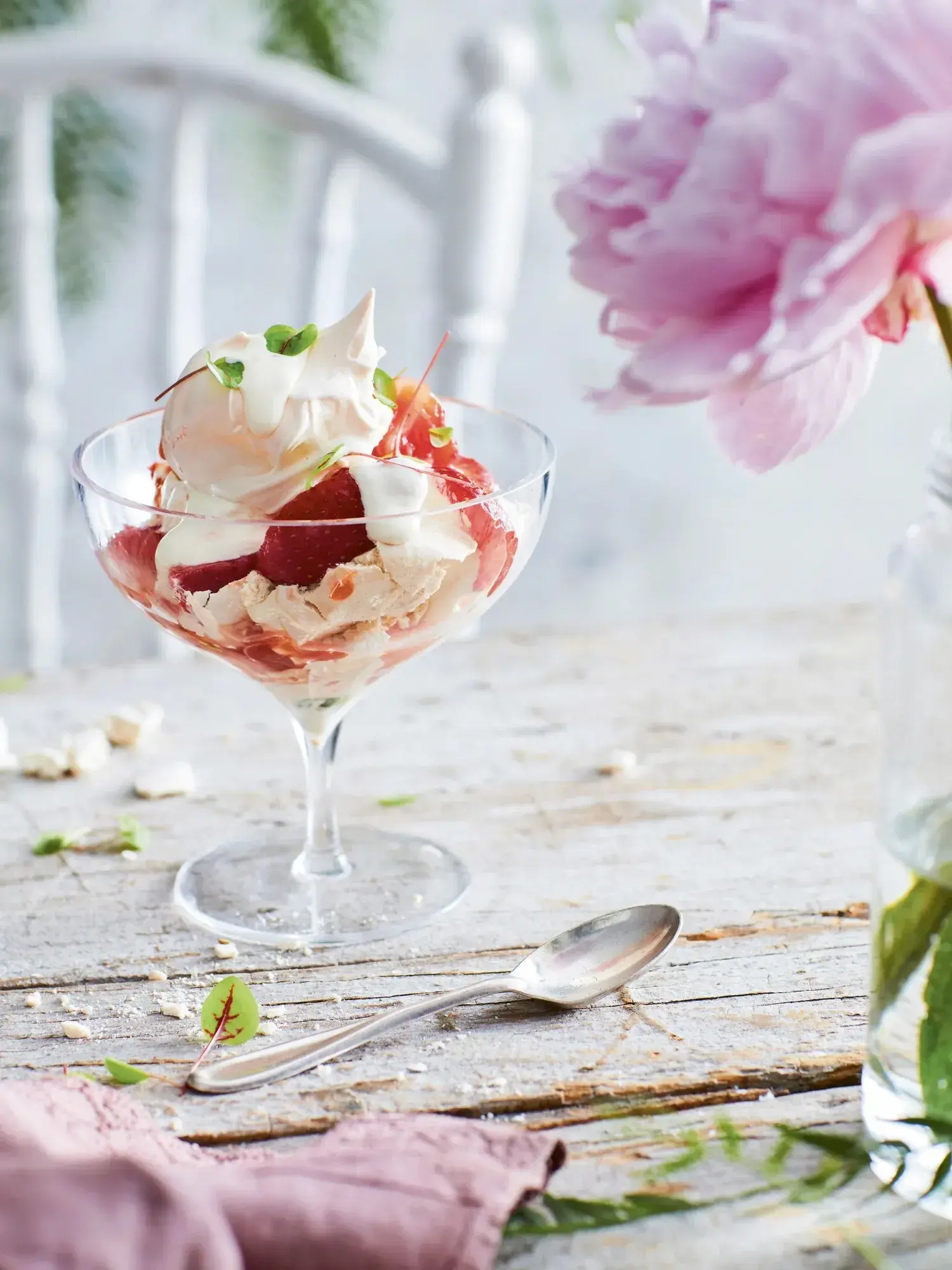 Eton Mess je lahodný dezert plný lehkosti a sladkých chutí. Spojuje šlehačku, křupavé pusinky a šťavnaté jahody do jediné skleničky. Tento britský klasický dezert se připravuje rychle a jednoduše, přesto na stole působí elegantně a slavnostně. Ideální volba pro letní dny, oslavy nebo jen tak pro radost.