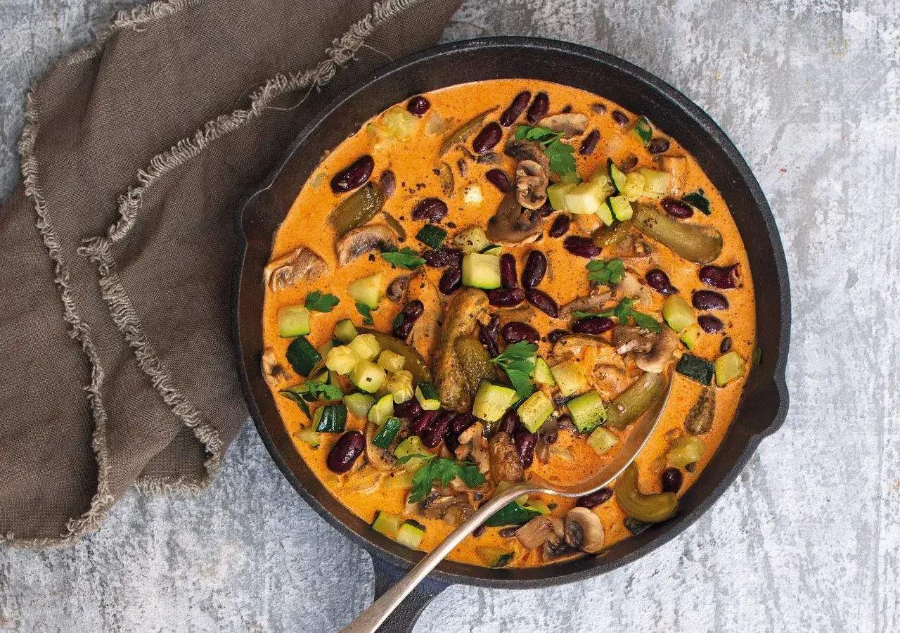 Kombinace výrazné omáčky a křupavé zeleniny je naprosto skvělá. Navíc fazole zasytí a jsou téměř bez kalorií. Jednoduché jídlo na způsob fazolového guláše zvládnete do 25 minut a pochutná si na něm celá rodina. Podávejte ho s dušenou rýží nebo krajíci čerstvého chleba.