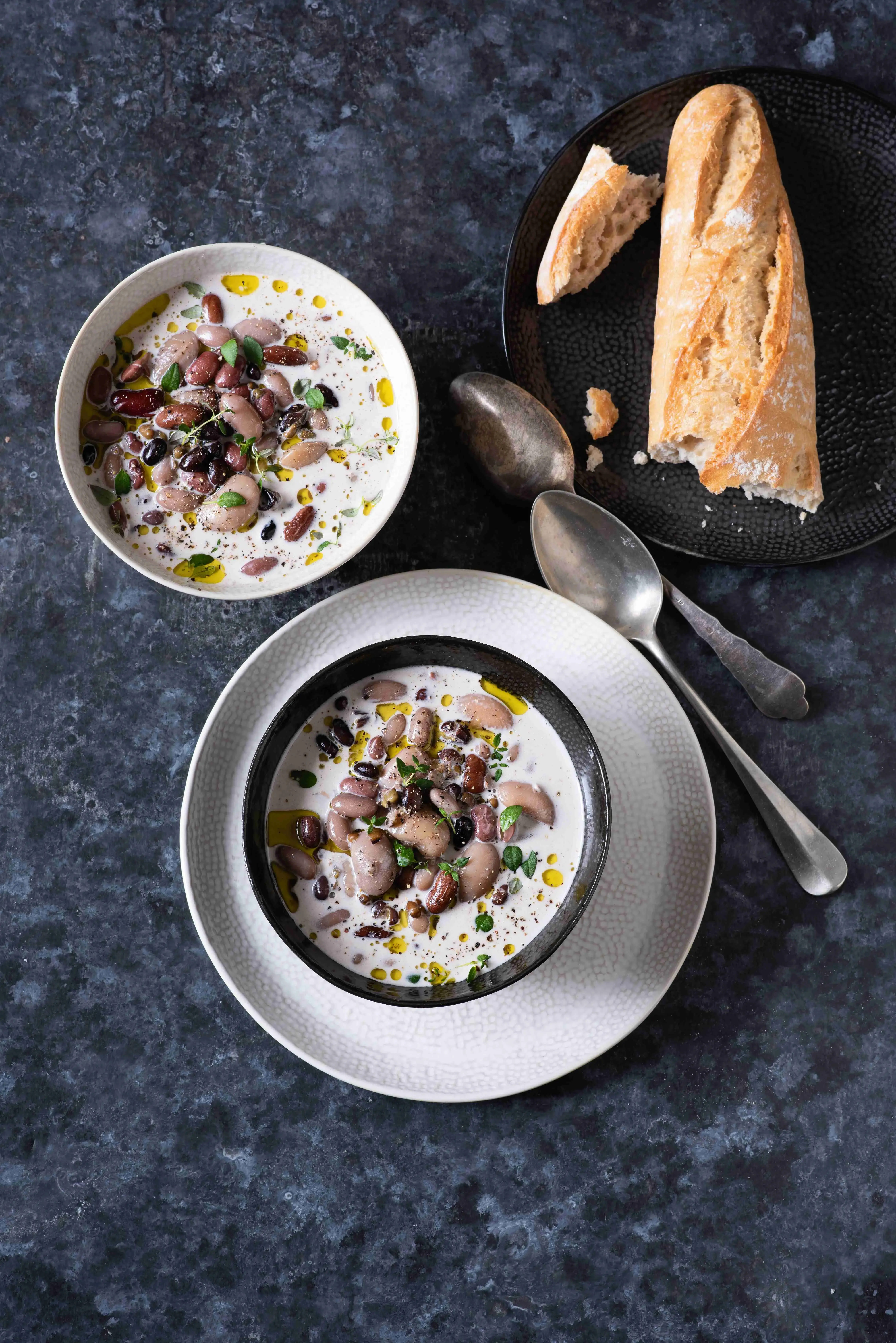 Fazole vařené ve vývaru jsou vlastně téměř to samé jako krémová polévka před rozmixováním – čím víc druhů fazolí použijete, tím zajímavější chuti a konzistence se dočkáte. Smetana dodá polévce jemnost.