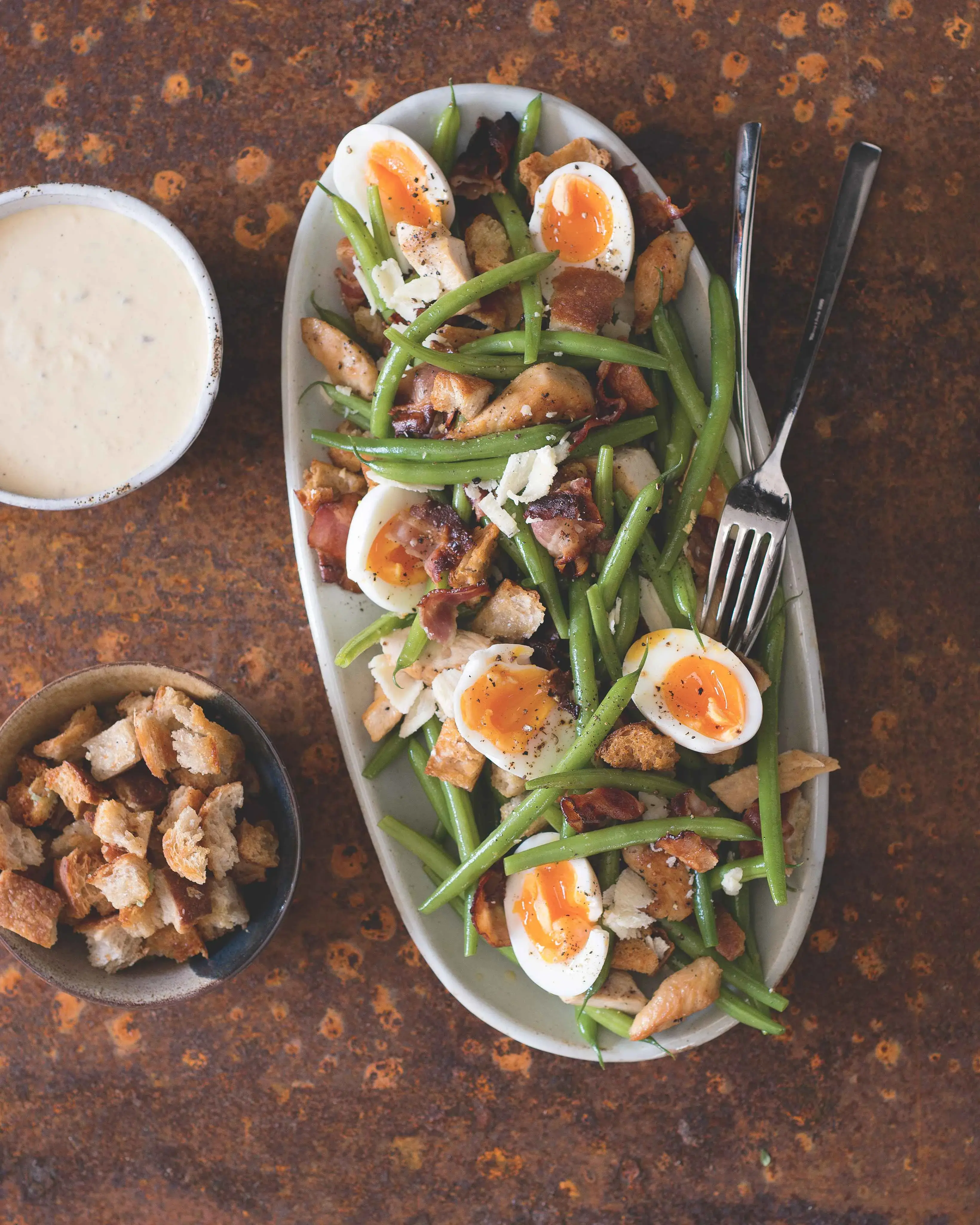 Volně jsme se inspirovali klasickým salátem Caesar, vypůjčili si jeho nepřekonatelnou zálivku a zkombinovali ji se zelenými fazolkami. Výsledek nás naprosto uchvátil!