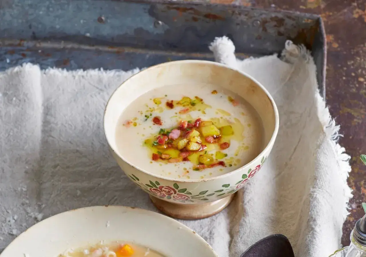 Jednoduchá a nápaditá bílá fazolová polévka, kterou opečené bramborové kostičky promění v naprostou delikatesu. Hustá, sytá a poctivá. Přesně taková, jaká dobrá fazolačka má být. A bramborové krutonky jsou hit!