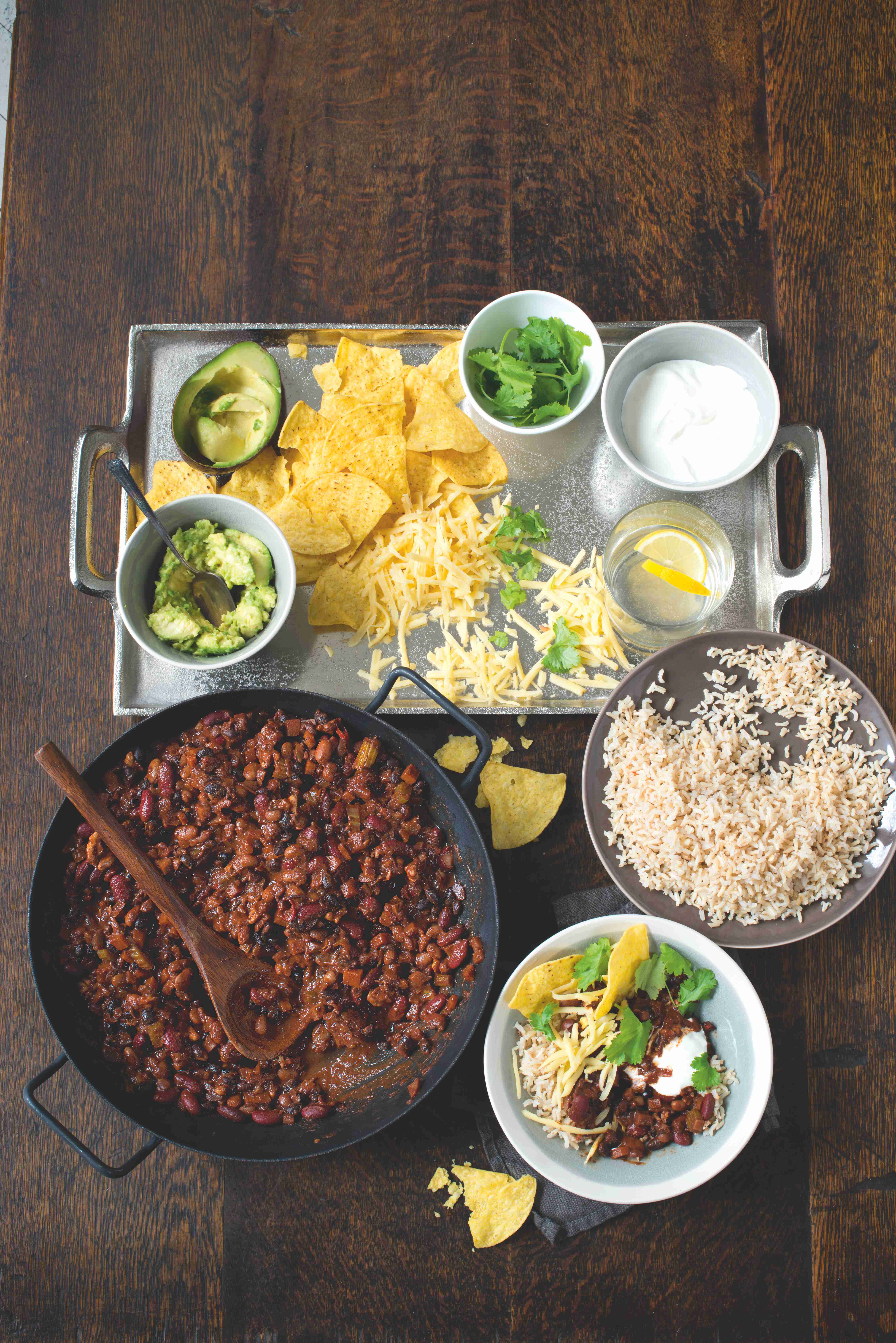 „Jídlo jako skládačka je na večírek ideální! Tohle chilli je ‚sin carne', tedy bez masa, nic vám ale nebrání v tom, abyste ho doplnili miskou s opečenou slaninou,“ radí redaktorka Stáňa Moravcová ml. Uvidíte, že o chilli sin carne se vaši hosté jen poperou a odvážlivci budou žadonit i o recept.