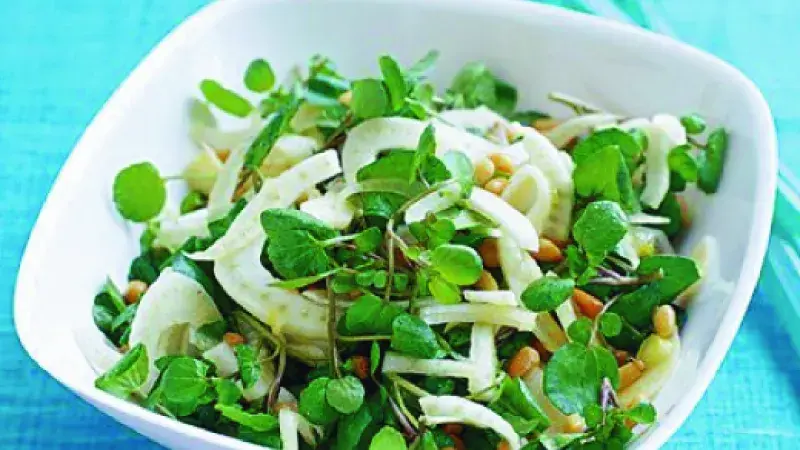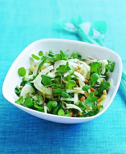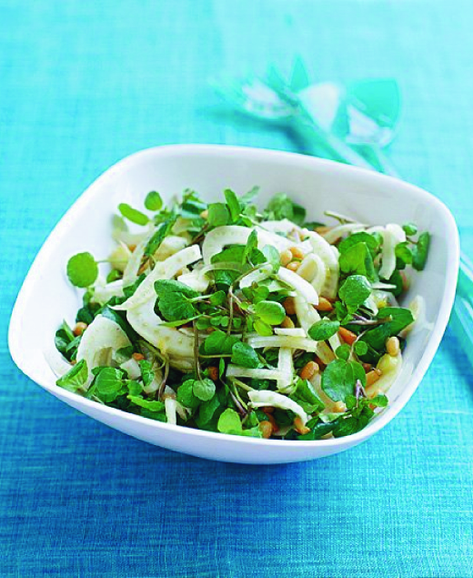 Autor: Redakce Apetit , z vydání Apetit Fenyklový salát s řeřichou a piniovými oříšky