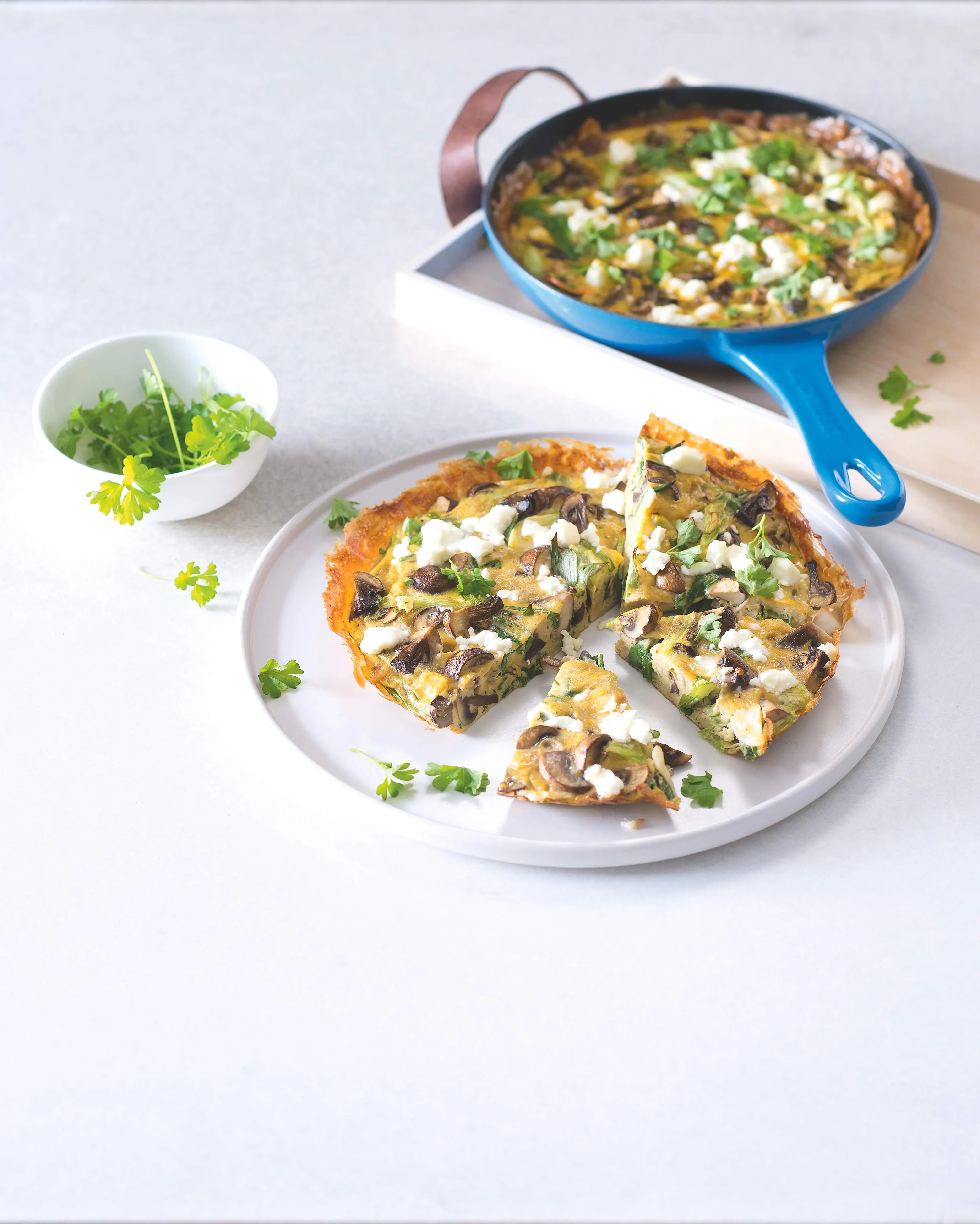 Chcete-li servírovat večeři do půl hodiny, máte několik možností. Jednou z nich je příprava vajec v jakékoli podobě. Frittata je nejen rychlá, ale také sytá a neuvěřitelně variabilní. Přidat do ní můžete takřka cokoli, na co máte chuť nebo co právě nabízí vaše lednice. My si oblíbili verzi s jarní cibulkou a žampiony.